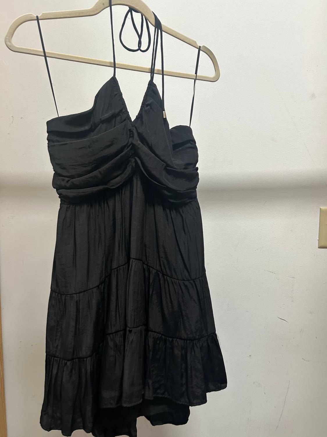 The kind of easy and flattering dress you'll be reaching for all season long. Elevate your dinner party attire with the Women's Multi Tiered Halter Mini Dress by Day + Moon, a stylish addition to your summer wardrobe. This slip silhouette mini dress in solid black features delicate spaghetti straps and a chic halter neckline, embodying a minimalist yet trendy look. Designed without pockets for a sleek finish, it offers a convenient pull-on closure. Enjoy effortless sophistication in this on-trend maximalist piece.