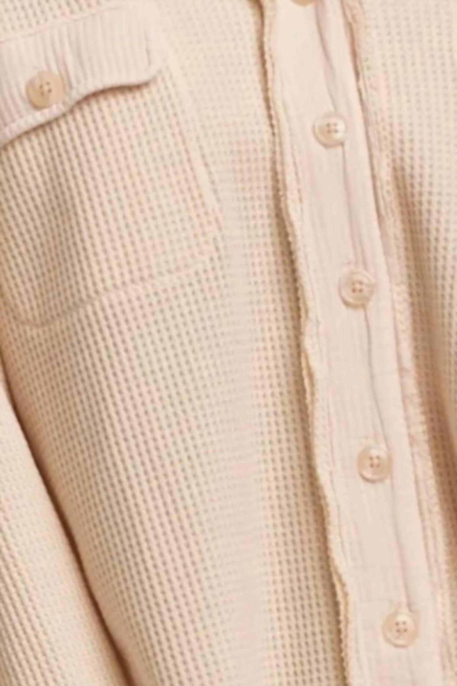 Perfectly tailored and soft to the touch. Explore effortless style with the Foster Shirt by DEAR JOHN DENIM, a chic addition to your wardrobe in a refined cream shade. This women’s long sleeve button-down features a sophisticated waffle texture, crafted from a blend of 65% Polyester and 35% Cotton. With a 25" body length, it's designed to transition from work to play with ease. Care: Machine wash cold and tumble dry low.
