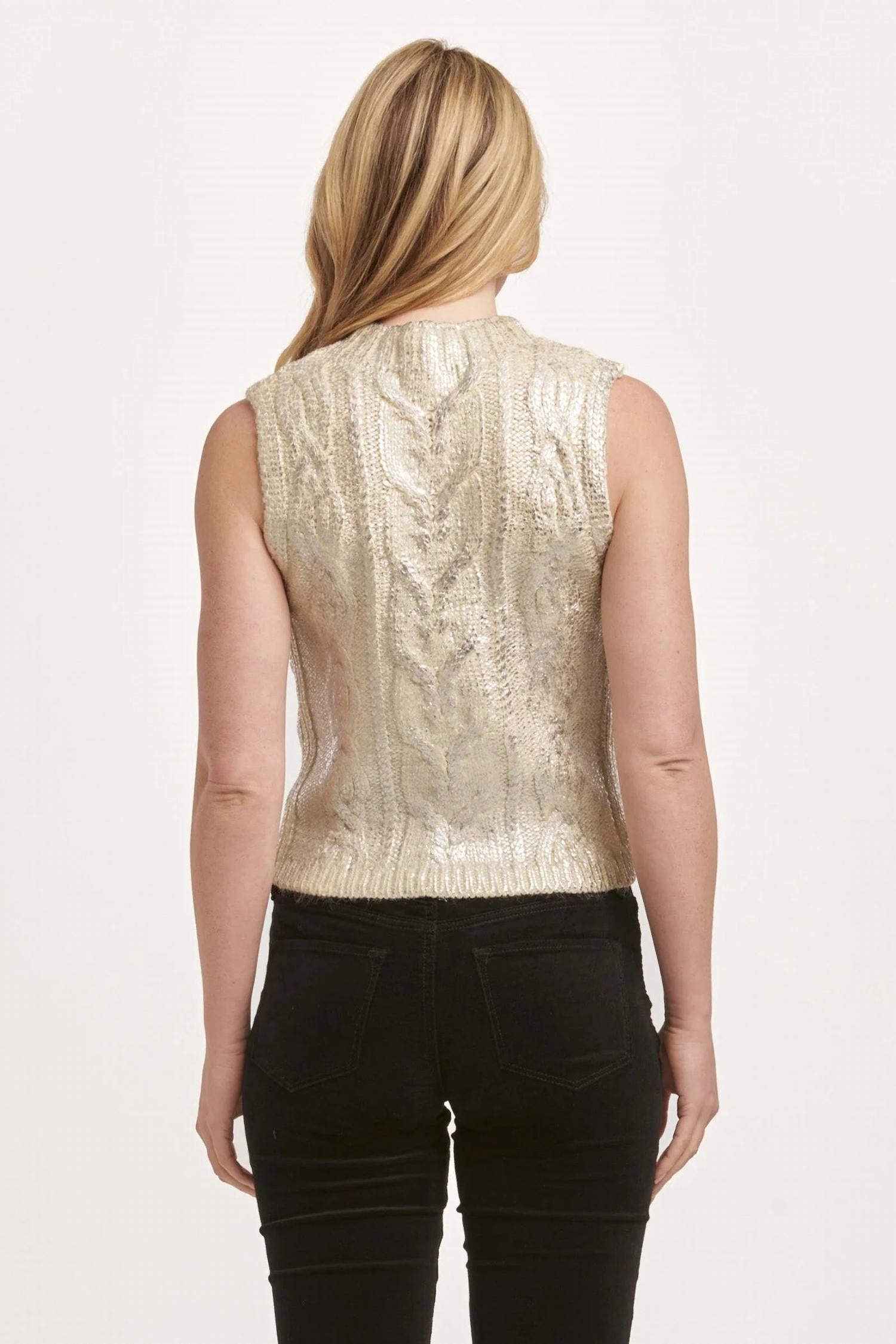 Stay warm and stylish in this versatile and effortlessly cool knitwear staple. Wear it alone or layered, it's the perfect sweater for the season and you'll wish you had it in every color. Elevate your wardrobe with the Tatiana Sweater by DEAR JOHN DENIM, a stunning sleeveless piece in a classic ivory with silver, perfect for cocktail parties. This fitted sweater features a chic crew neck and a subtle shiny foil pattern, exuding boho chic style for the spring season. Closure: Pull on. Care: Dry clean only.
