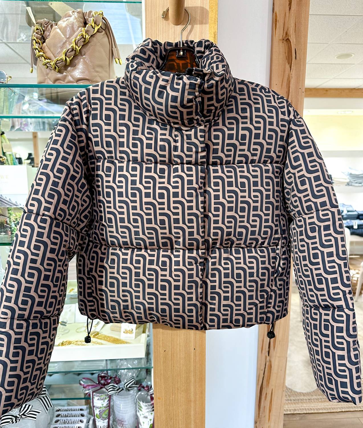 Cooler temps means cute puffer jackets and this one is a fan favorite. Introducing the Deluc Baptisia Puffer Jacket, a chic addition to your streetwear collection. Designed with long sleeves and a stylish mockneck, this jacket showcases a beige and brown pattern that catches the eye. Crafted with a lined interior, it features a convenient zip closure, perfect for travel and staying cozy in spring. Care for your new favorite with ease: machine wash and tumble dry.