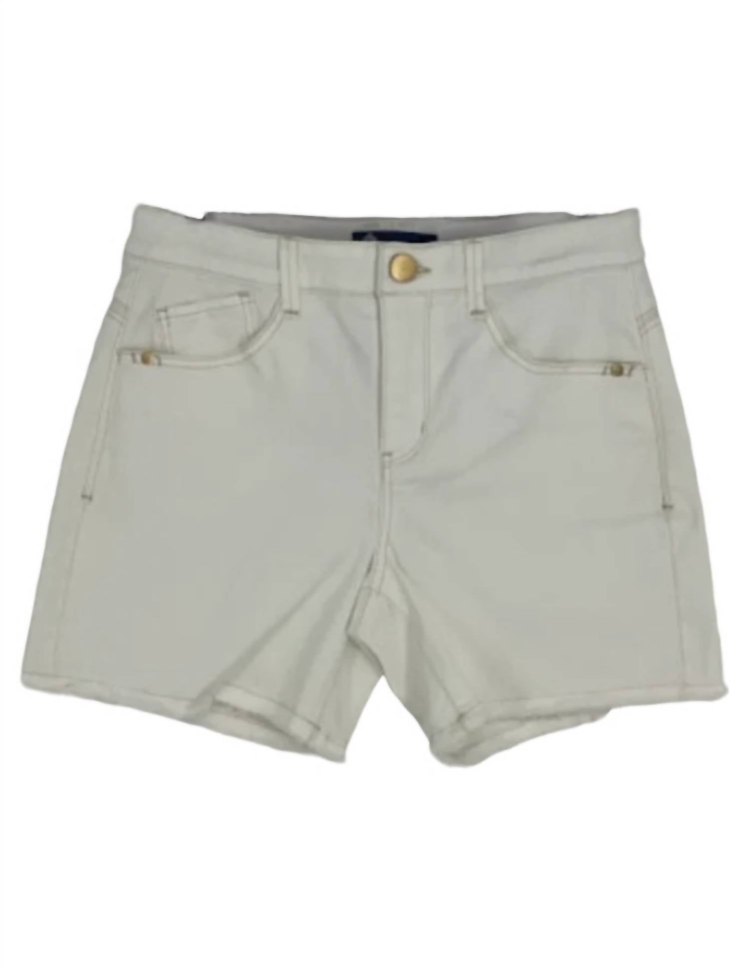 Tuck your favorite tee into these high-waist shorts for a more casual-cool feel. Elevate your summer wardrobe with Democracy's Women's Denim Shorts with Fray Hem, a perfect blend of style and comfort. Designed with a high waist and featuring a trendy fray hem, these solid white denim shorts offer a 9.5" rise and a 5" inseam for a flattering fit. Closure: Button closure. Ideal for vacation and 90s fashion-inspired looks.
