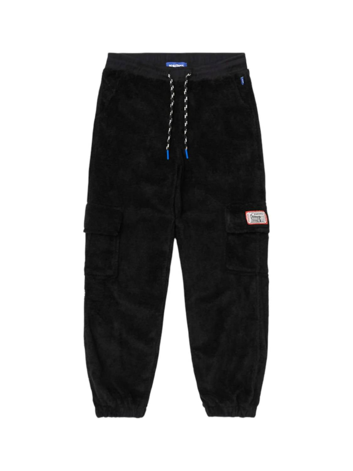 Elevate your casual wardrobe with the Men's Overcast Sherpa Cargo Sweatpants by DEVÁ STATES. Crafted from 100% Polyester, these black sweatpants offer exceptional comfort with a super-soft sherpa material. Featuring a relaxed fit that tapers to elastic cuffs, they include multiple cargo and front pockets, as well as a zippered back pocket for convenience. Pull-on with adjustable drawstrings. Machine wash, tumble dry. Style runs small; consider sizing up for the perfect fit.