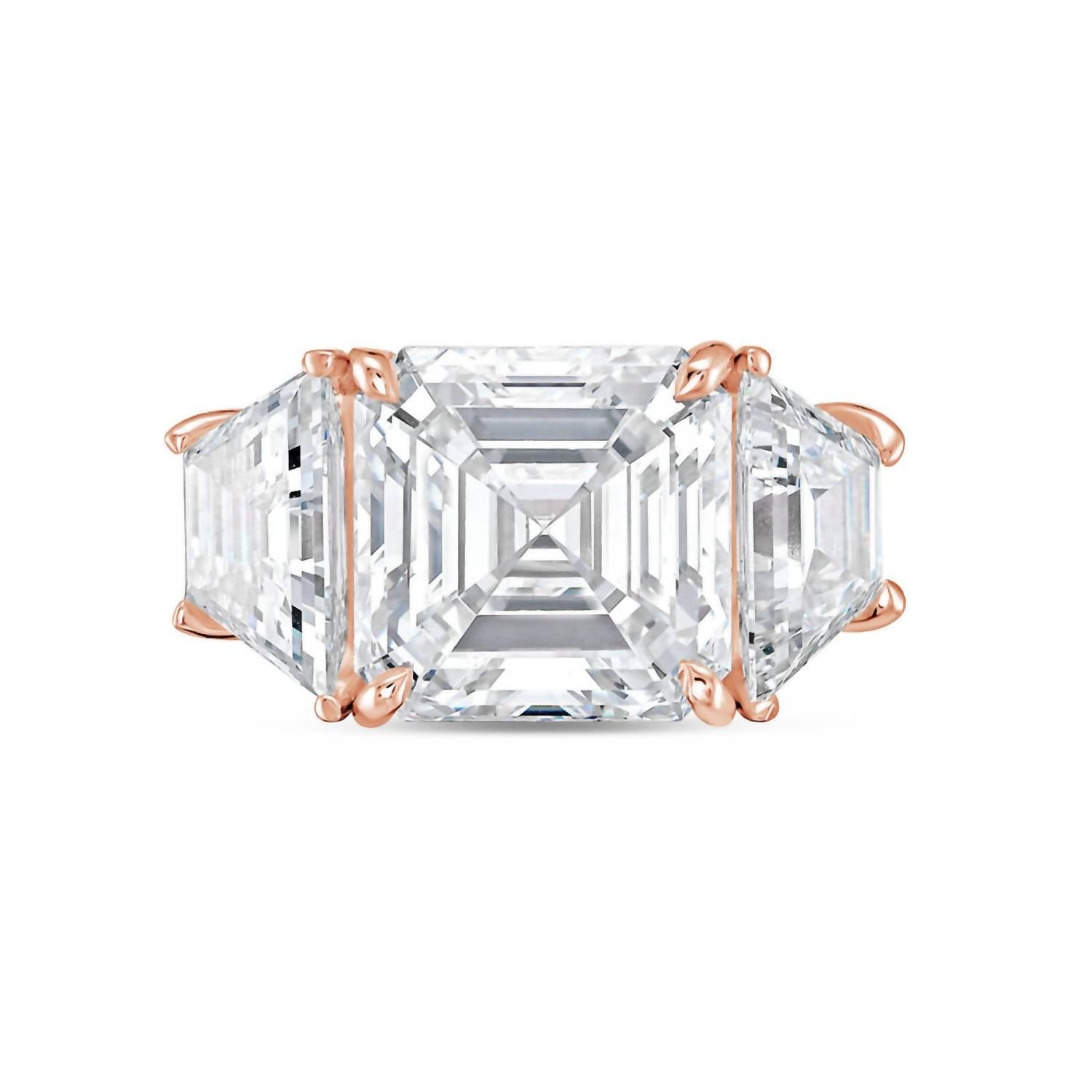 Diana M Jewels - 8.00cts Asscher-cut Lab-grown Diamond Ring With 1.00ct Trapezoid Side Stones