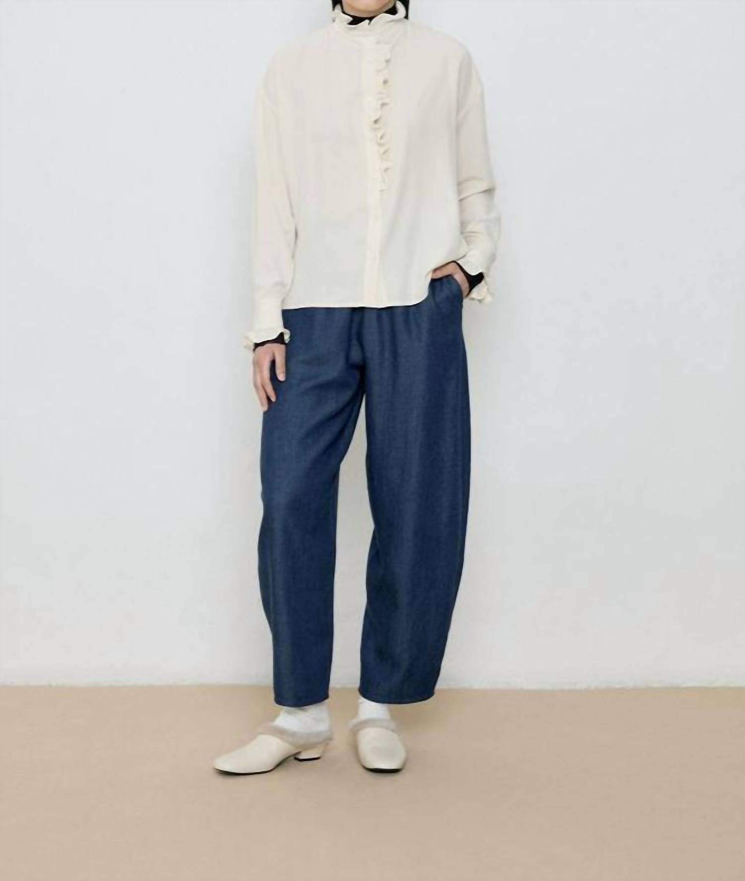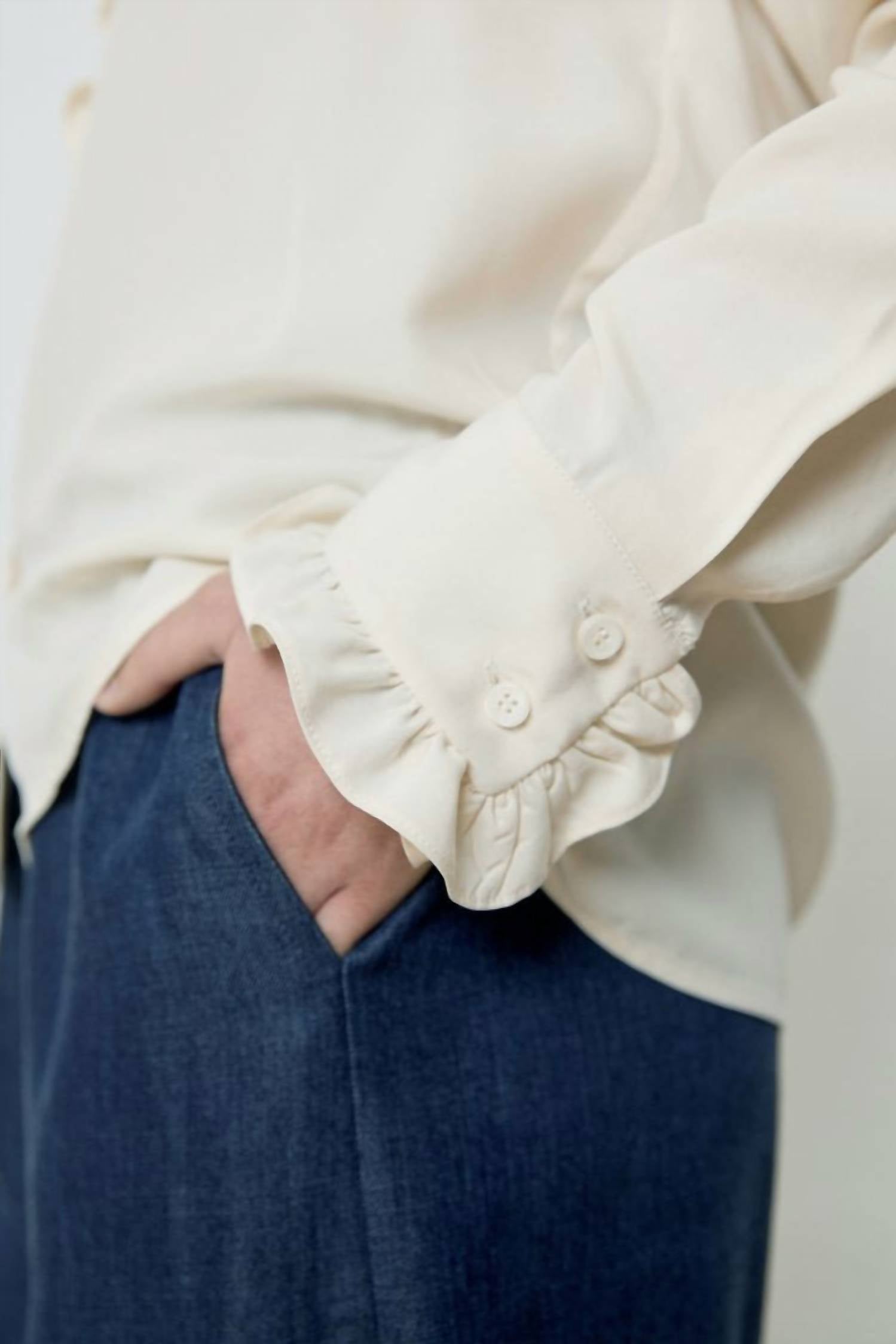 Perfectly tailored and soft to the touch. Experience the elegant charm of the Ella Shirt by diarte, a women's button-down in Raw White that effortlessly embodies minimalist style. Crafted from silky Tencel Modal, this blouse offers a sustainable touch, featuring long sleeves with delicate gathered details on the cuffs and collar. Closure: Button closure. Perfect for a Spring dinner party.