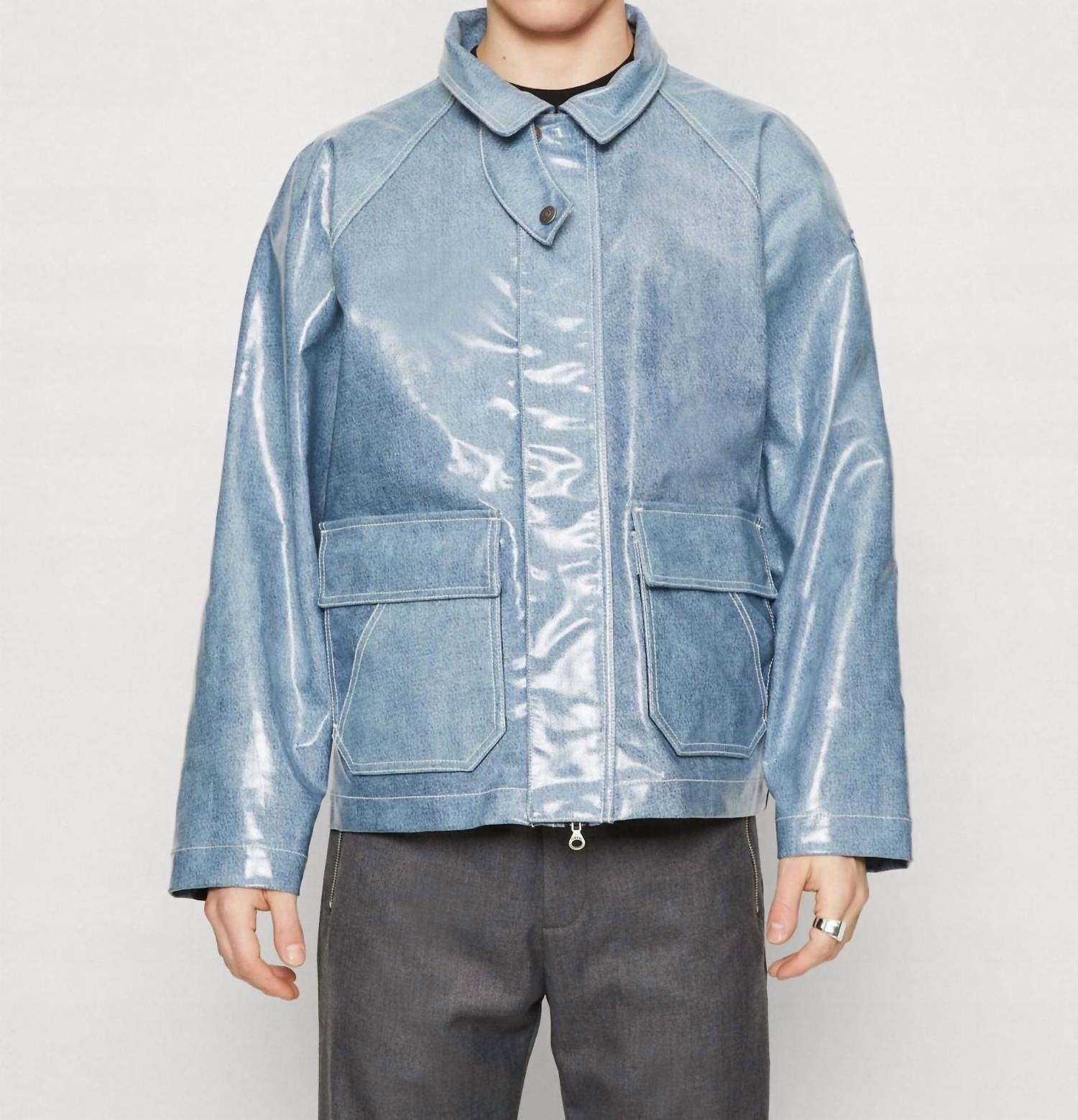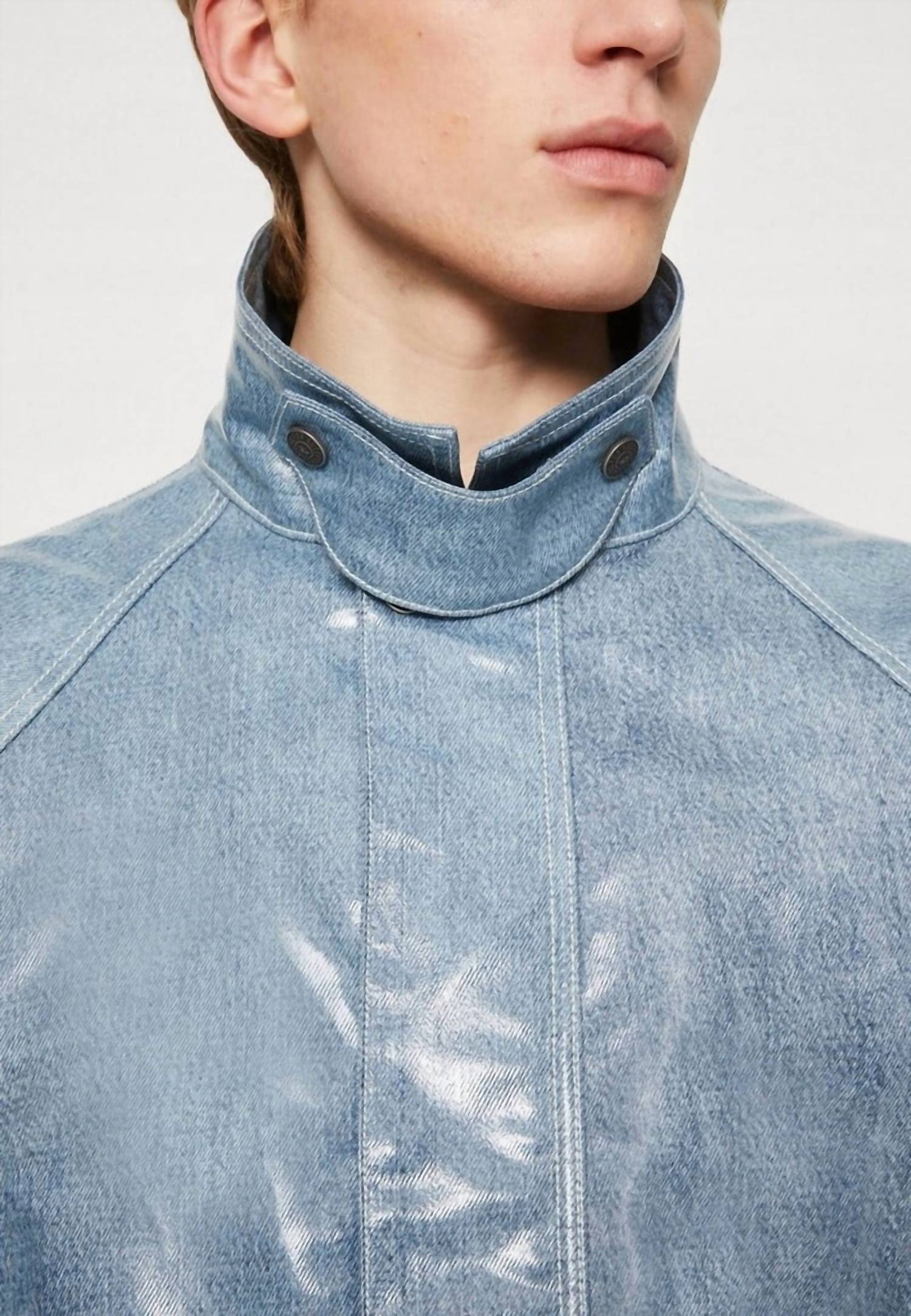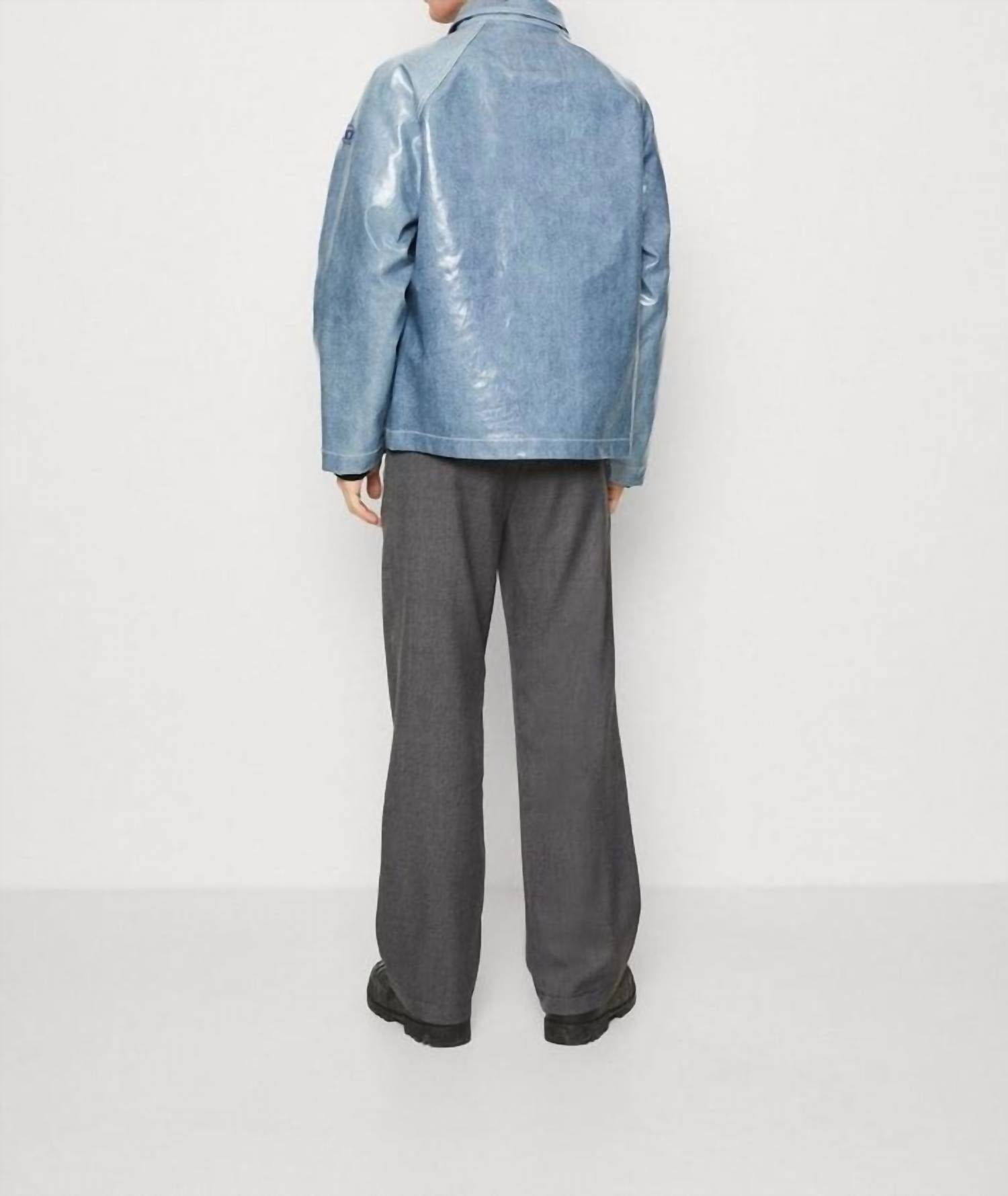 Meet the D-sury Coated Denim Jacket by DIESEL, a standout piece for evening events this fall. Crafted with long sleeves from blue denim featuring a 'salt and pepper' fading, it boasts a high-shine waterproof coating for a vintage appeal. Composition: 100% Cotton with a coating of 100% Polyurethane. Closure: Zip and snap-button closure. Care: Machine wash, lay flat to dry.