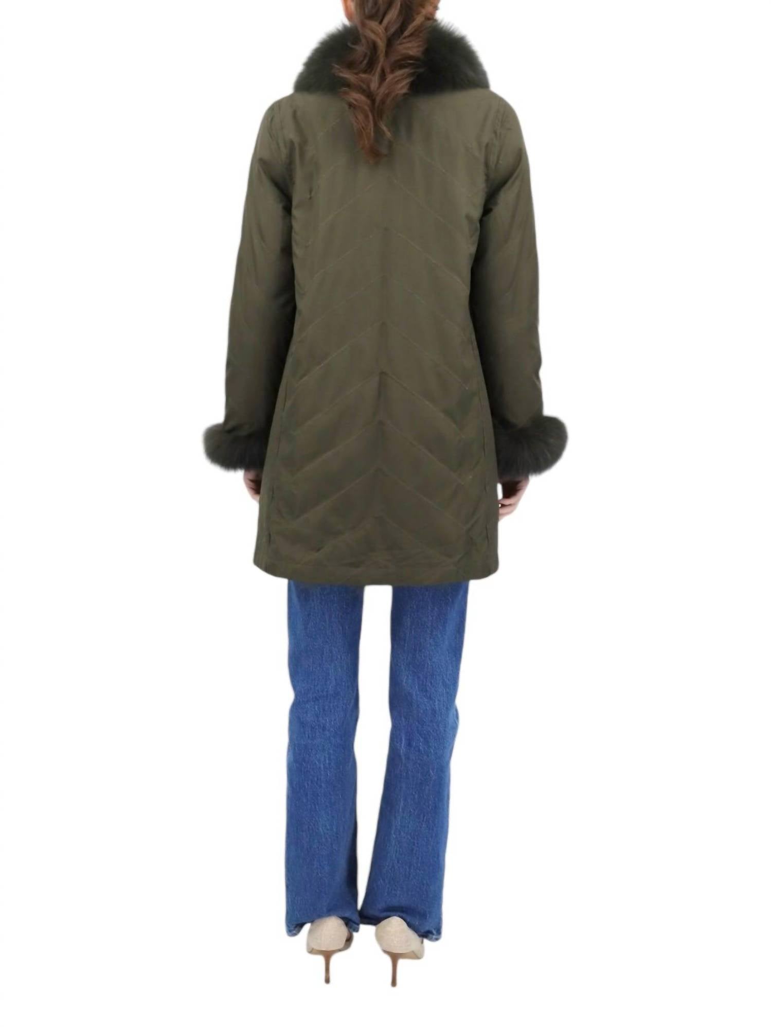 Cozy, cute and timeless. The puffer jacket that will keep you warm all season long. Elevate your travel attire with the Audrey Reversible Travel Coat by DiOMi, an exquisite piece in chic loden. This mid-length coat features long sleeves and a reversible design from silk to genuine fox fur, providing both texture and elegance. The water-resistant material and button closure make it practical for any winter journey. Care instructions recommend dry cleaning to maintain its luxurious quality, ensuring you're ready for any occasion, from streetwear outings to New Year's Eve celebrations.