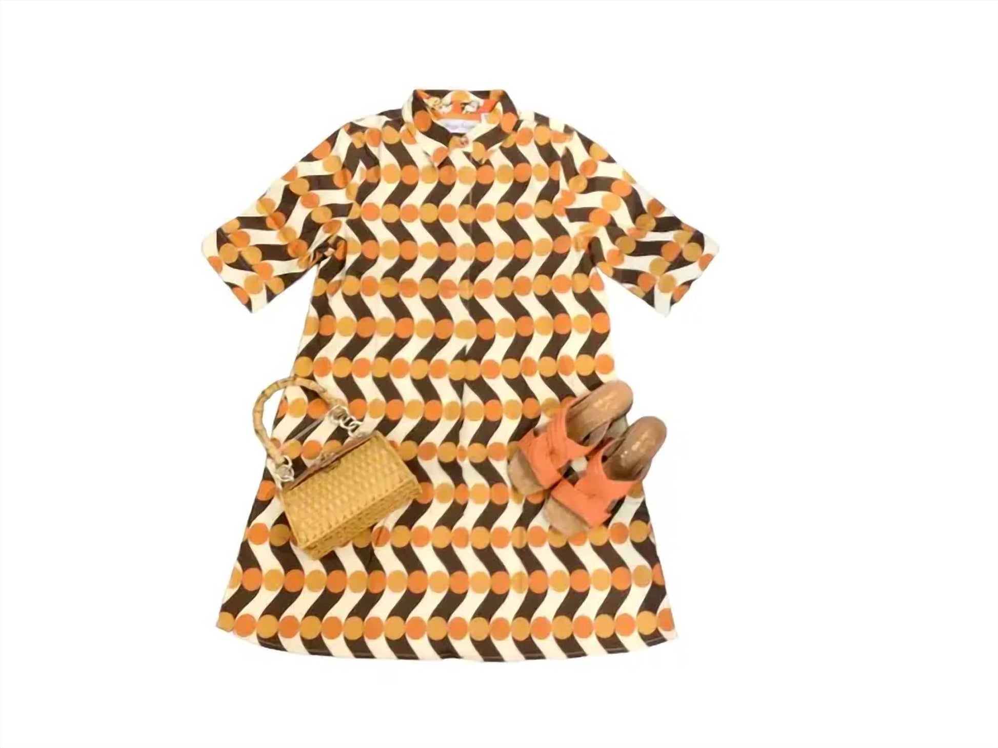 Casual, comfortable and cute! The dress that you'll be reaching for all season long. Introducing the Women's Chatham Dress by Dizzy-Lizzie, a captivating choice for any holiday party in Rust Op Art. This breezy mini shirt dress features short sleeves and a mockneck, providing a vintage-inspired flair with its geometric pattern. Crafted with attention to detail, it includes a button closure. For optimal care, hand wash is recommended.