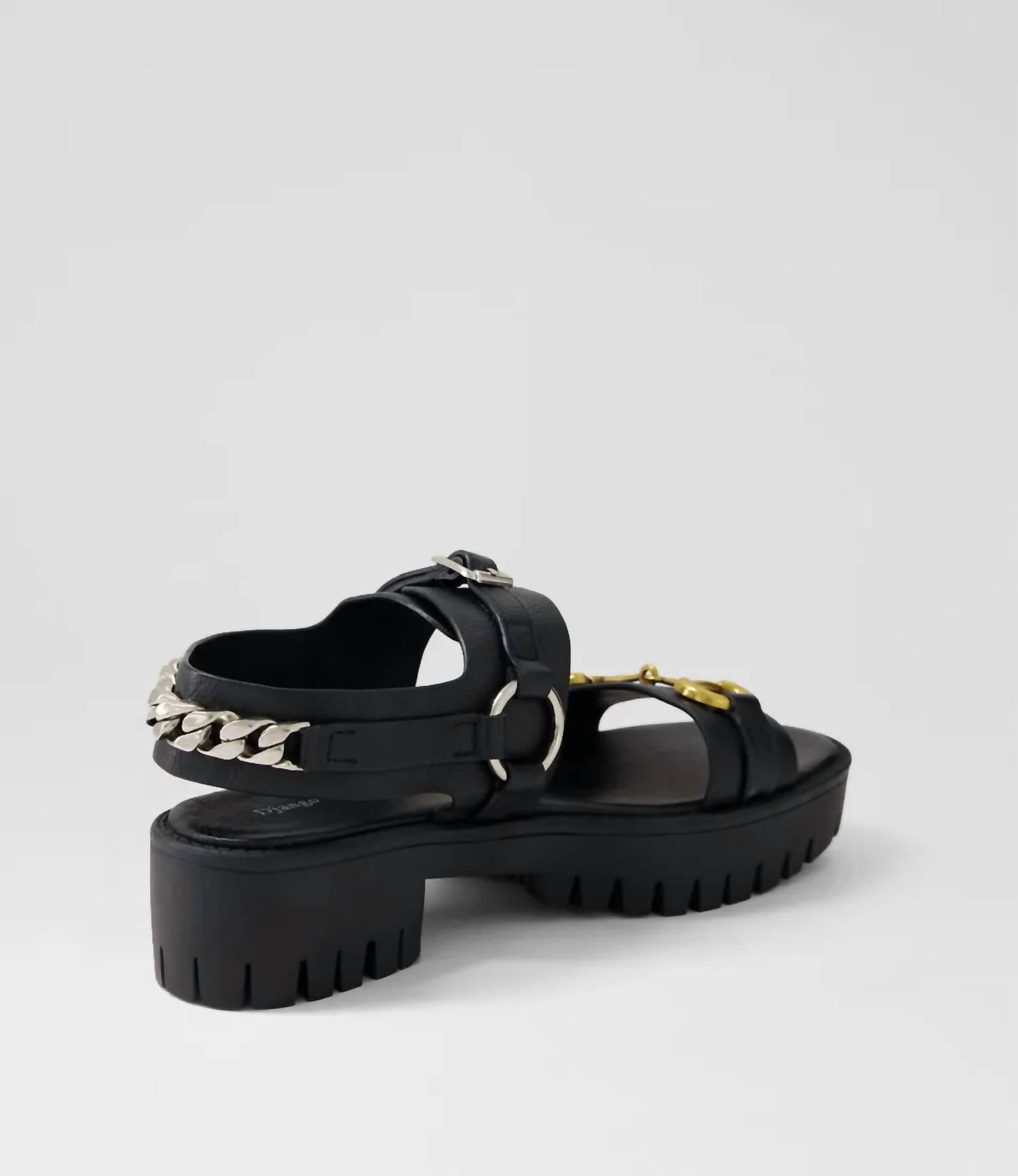 Flowy dresses, cropped pants, and even jumpsuits... this sandal works with them all! Introducing the Women's Briming Sandals by Django and Juliette, a striking blend of contemporary design and comfort. Crafted from premium leather, these sandals feature a chunky 4.5cm (1.77 inches) platform heel for a subtle lift. Enhanced with mixed metal hardware and a buckled arch strap, they offer a secure and adjustable fit. Designed in Australia, the treaded outsole ensures traction and stability, ideal for day-to-night versatility.