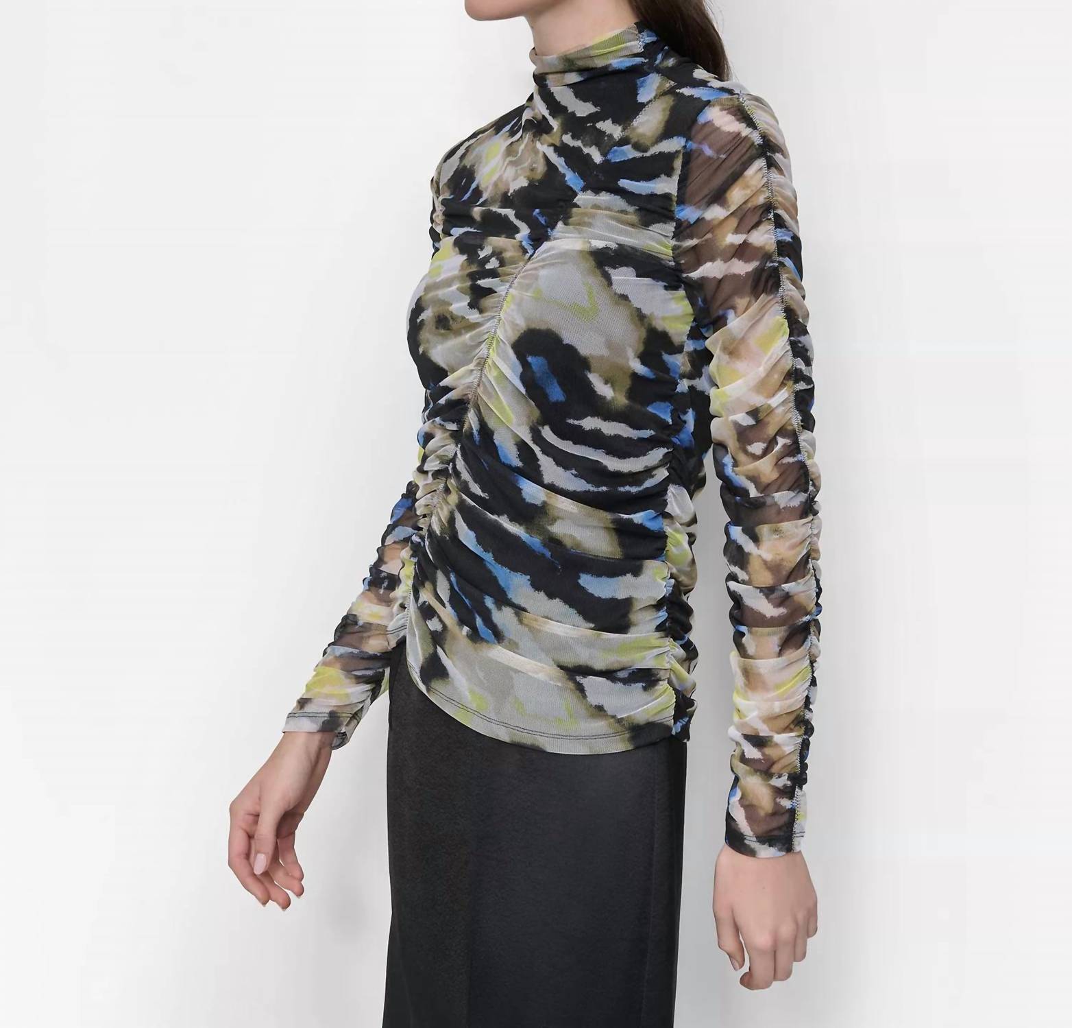 Dkny - Printed Mock-neck Long Abstract Tiger Top