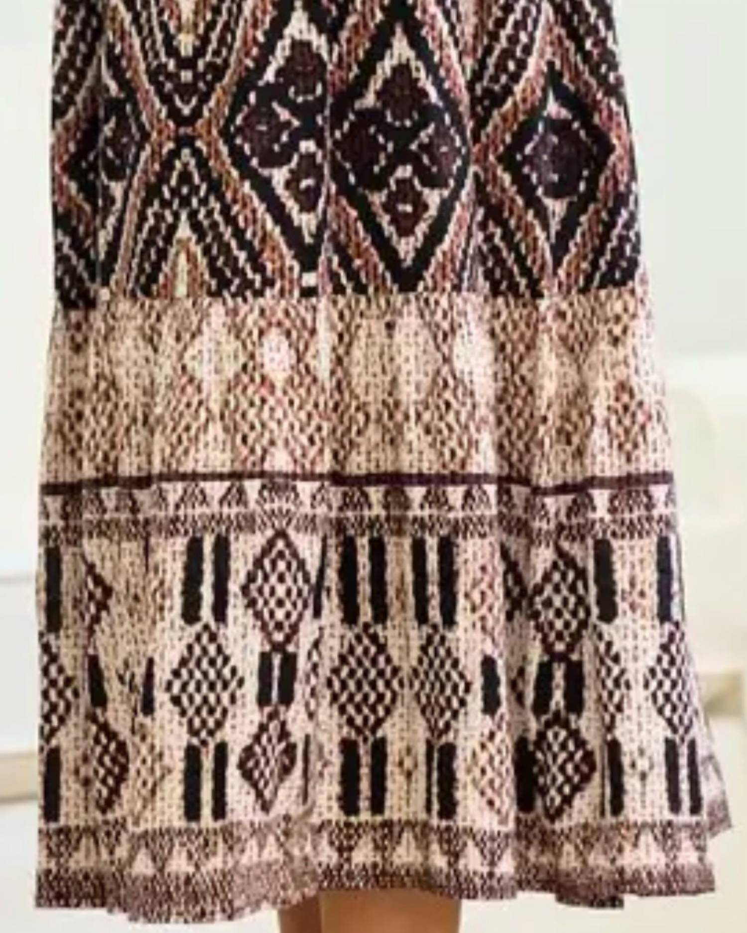 The midi length skirt is here to stay and we especially love this style. Step into boho chic style this spring with the Aztec Tiered Skirt by Doe and Rae, a must-have for your vacation wardrobe. This patterned midi skirt in elegant black and brown hues features a convenient pull-on closure for easy wear. Perfect for Easter celebrations or a sunny getaway, this skirt seamlessly blends timeless design with modern flair.