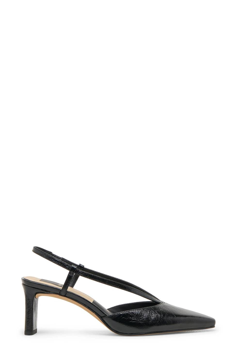 The perfect height for day to night. Meet the Ginay Slingback Pump by Dolce Vita, the epitome of minimalist elegance in chic black leather. Designed for evening events, this women's heel features a sophisticated pointed toe and a kitten heel standing at 3.25 inches tall. With its medium width, it provides a comfortable fit for most foot types. Perfect for fall, this stylish piece adds a touch of refined grace to any outfit.