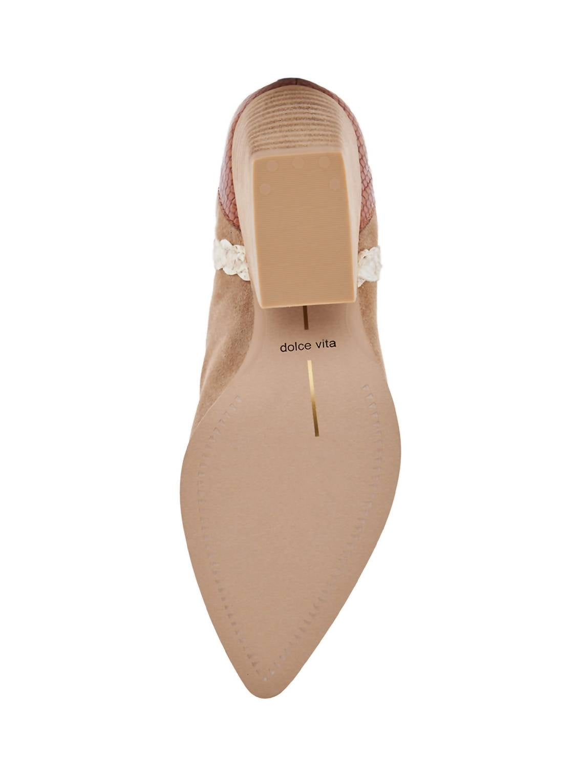 Say hello to the perfect, most versatile boot. The ankle height makes this style easily transition from day to night. Wear them with your favorite skinny jeans and tee for a more laid back look, or pair them with your favorite mini dress and jacket for a night out on the town. Step out in style with the Women's Loral Booties by Dolce Vita, featuring a suede body complemented by leather detailing. These taupe multi suede ankle boots boast an 8.5" shaft height and a chic pointed toe with a mid 2.6" leather stacked block heel that blends comfort with a boho chic vibe. Ideal for fall parties and holiday gatherings, they add pizzazz to any ensemble. With a synthetic outsole, these booties fit true to size and effortlessly pair with denim or a sundress for a timeless look.