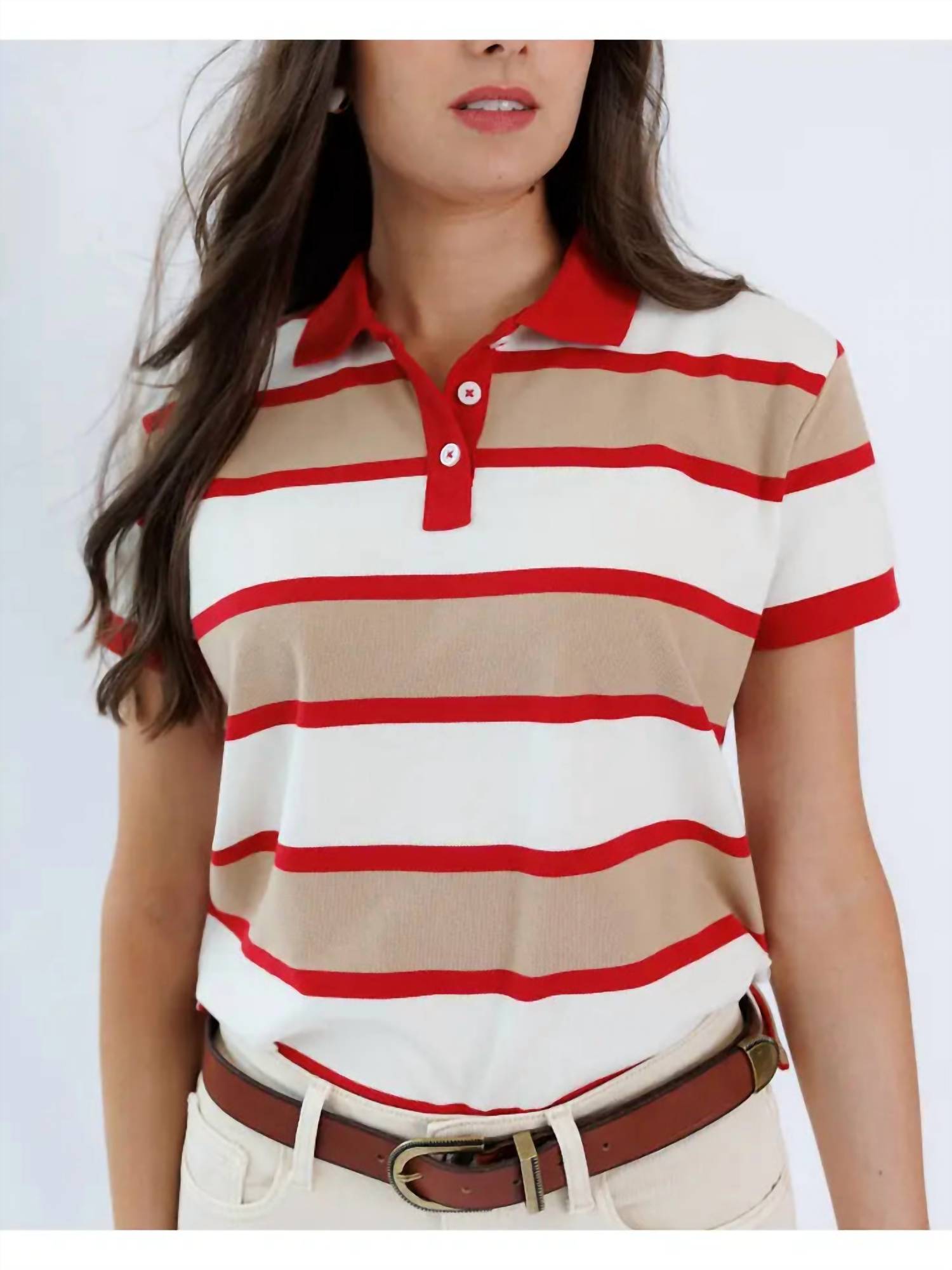 The short sleeve tee you'll want in every color. Introducing the Pep Club Short Sleeve Polo Top by DOWNEAST, a charming blend of style and playfulness in a multi-stripe design. This top features short sleeves and a classic collar, ideal for both casual outings and a day at the club. Closure: Button closure. Perfect for a touch of prep and versatility in your summer wardrobe.