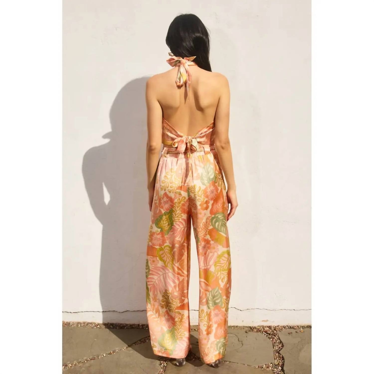 Embrace vibrant elegance with the Peaches Summer Satin Pants by DRESS FORUM, perfect for your summer wardrobe. These wide-leg pants in a patterned beige multi feature a high-rise elastic waist with belt loops and a removable sash belt, ensuring a comfortable fit. Crafted from 100% polyester, they include practical side pockets and a pull-on closure for ease of wear. Care instructions: Hand wash and line dry.