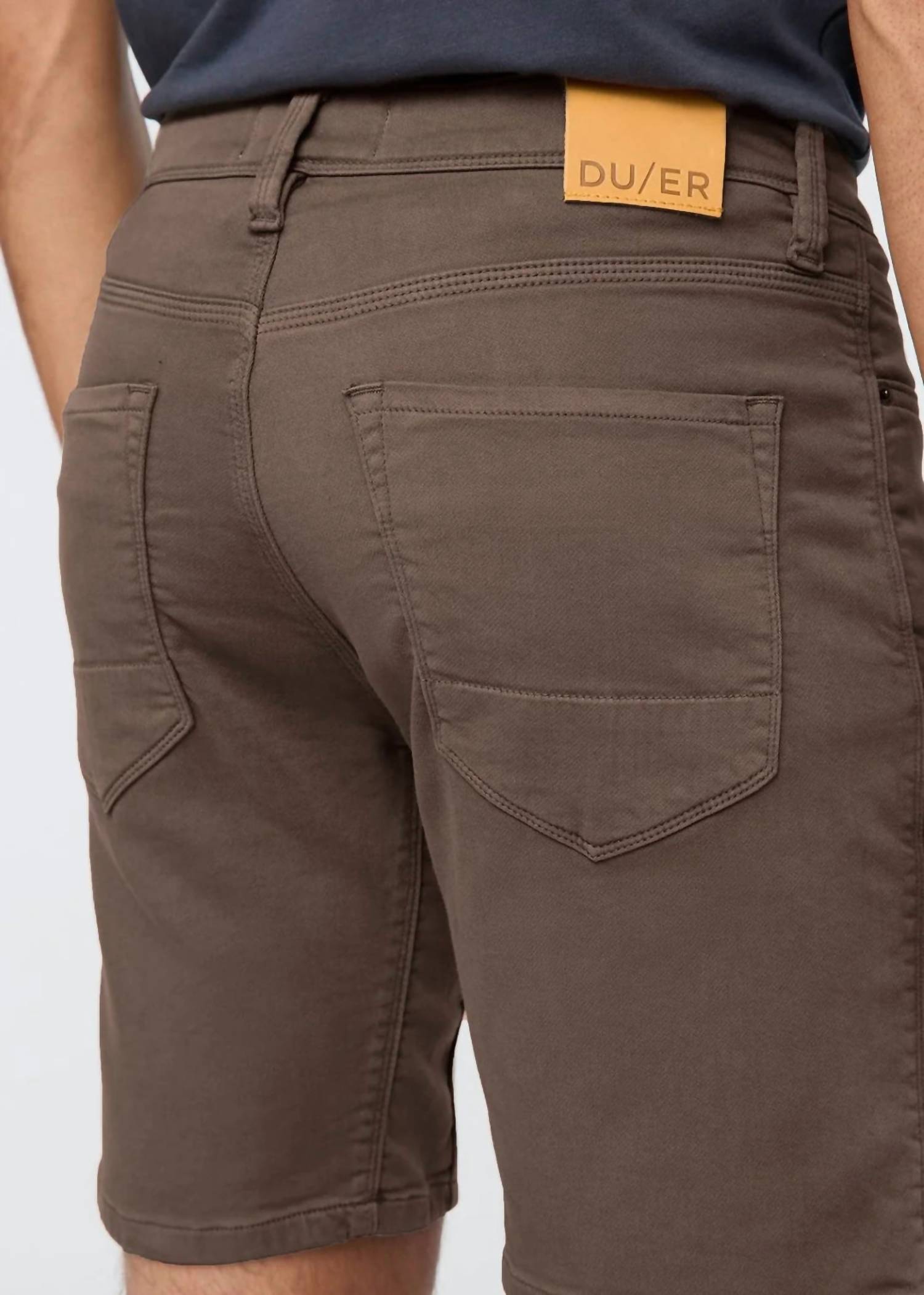 Experience the versatile and comfortable No Sweat Slim Fit Short from Duer, designed in a solid CANTEEN color for the modern man. Crafted from a cotton blend, these shorts integrate plant-based lyocell for exceptional antibacterial and moisture-wicking benefits. Emphasizing practicality, the shorts offer a zip closure and a classic 5-pocket style, including security back pockets for safe storage. Care instructions recommend hand washing and line drying to maintain their quality.