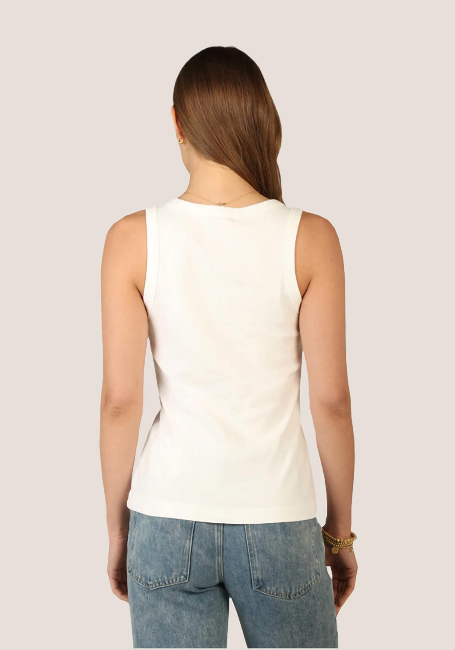 The perfect tank top for those warmer weather seasons. Discover the Modern Rib Crew by Dylan, a chic addition to your summer wardrobe. Crafted from breathable cotton, this crisp white tank top features a solid pattern with a crewneck and short sleeves for a relaxed fit. Closure is simple with a pull-on style, offering easy wear for vacations or casual outings. For care, this piece is machine washable and can be tumble dried.