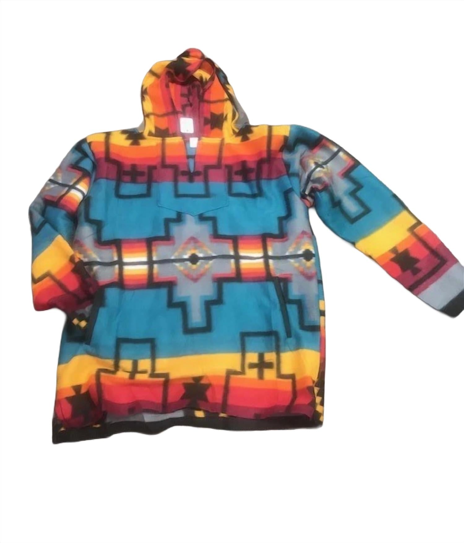 Introducing the Unisex Navaho Fleece Hoodie by El Paso Saddleblanket, a stylish addition to your winter wardrobe with its striking turquoise & red or tan & brown print. This long-sleeve hoodie is crafted from 100% polyester fleece, featuring a hood and convenient side pockets. Closure: Pull-on, for effortless wear. Care: Machine wash and line dry to maintain its vibrant pattern. Perfect for a streetwear look during New Year's Eve or any casual vacation.