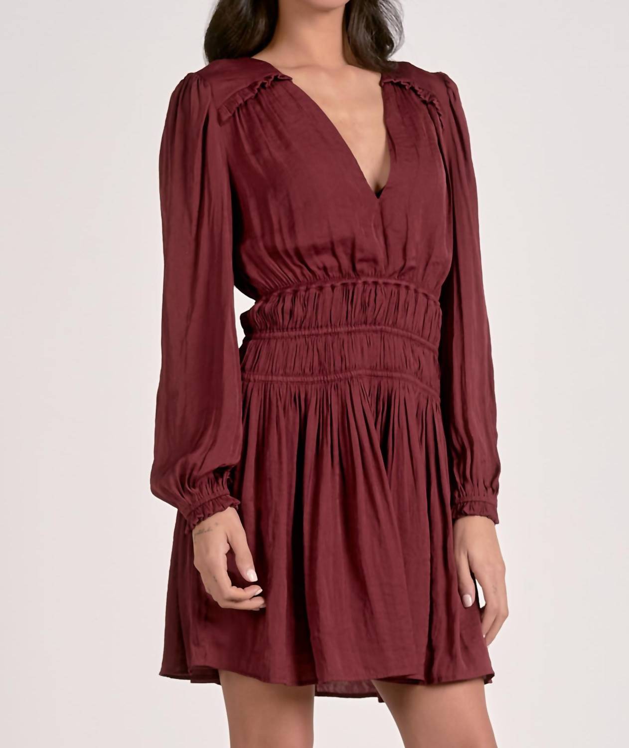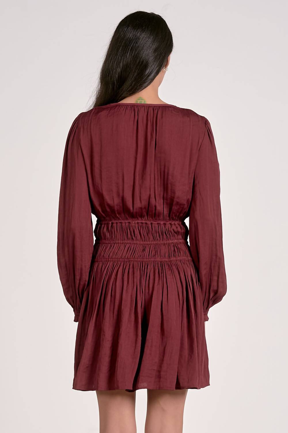 Elan - Long Sleeve Gathered Mini Dress