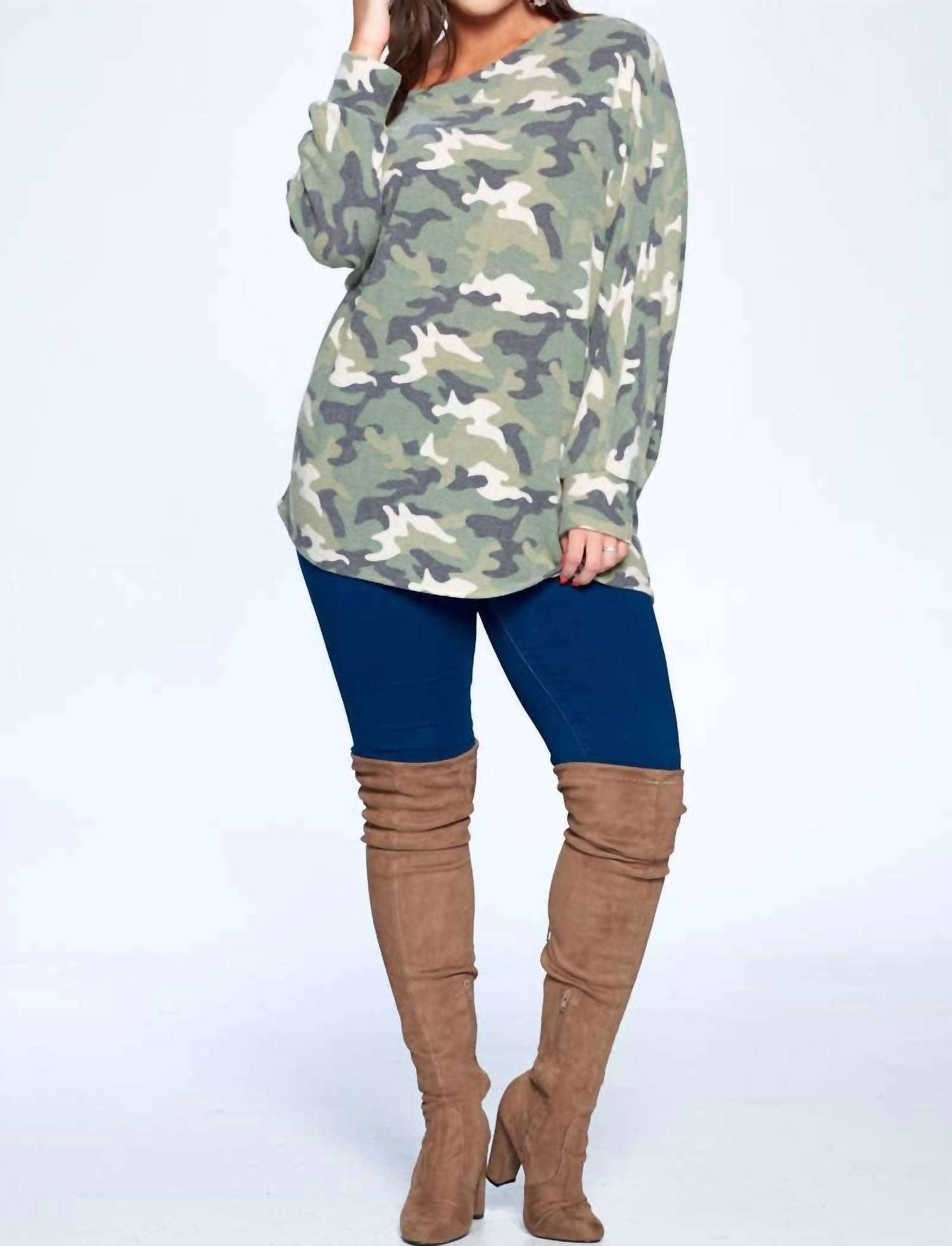 A timeless blouse that will never go out of style. Introducing the Slouchy One Shoulder Dolman Top by Emerald Collection, a trendy addition to any woman's summer wardrobe. This soft camou blouse features long sleeves in a stylish slouchy design with an off-the-shoulder neckline. Crafted from 65% polyester, 32% rayon, and 3% spandex, this top is both soft and stretchy. Closure: Pull-on style. Care: Machine wash and tumble dry for easy maintenance. Perfect for streetwear lovers who appreciate comfort and style.