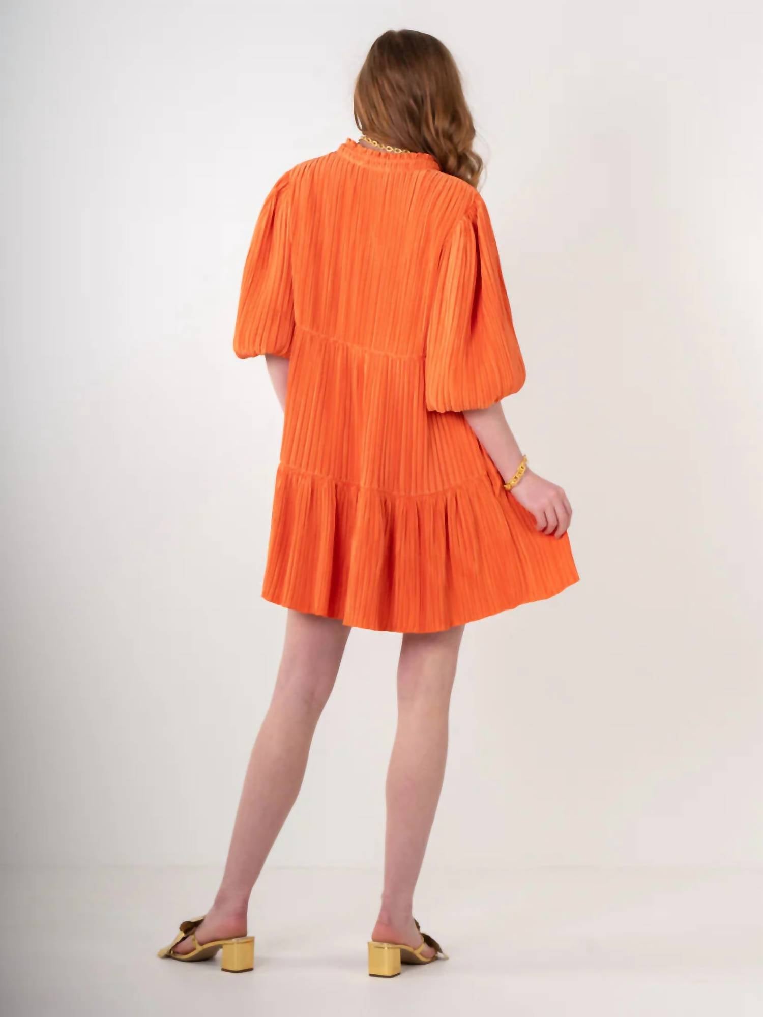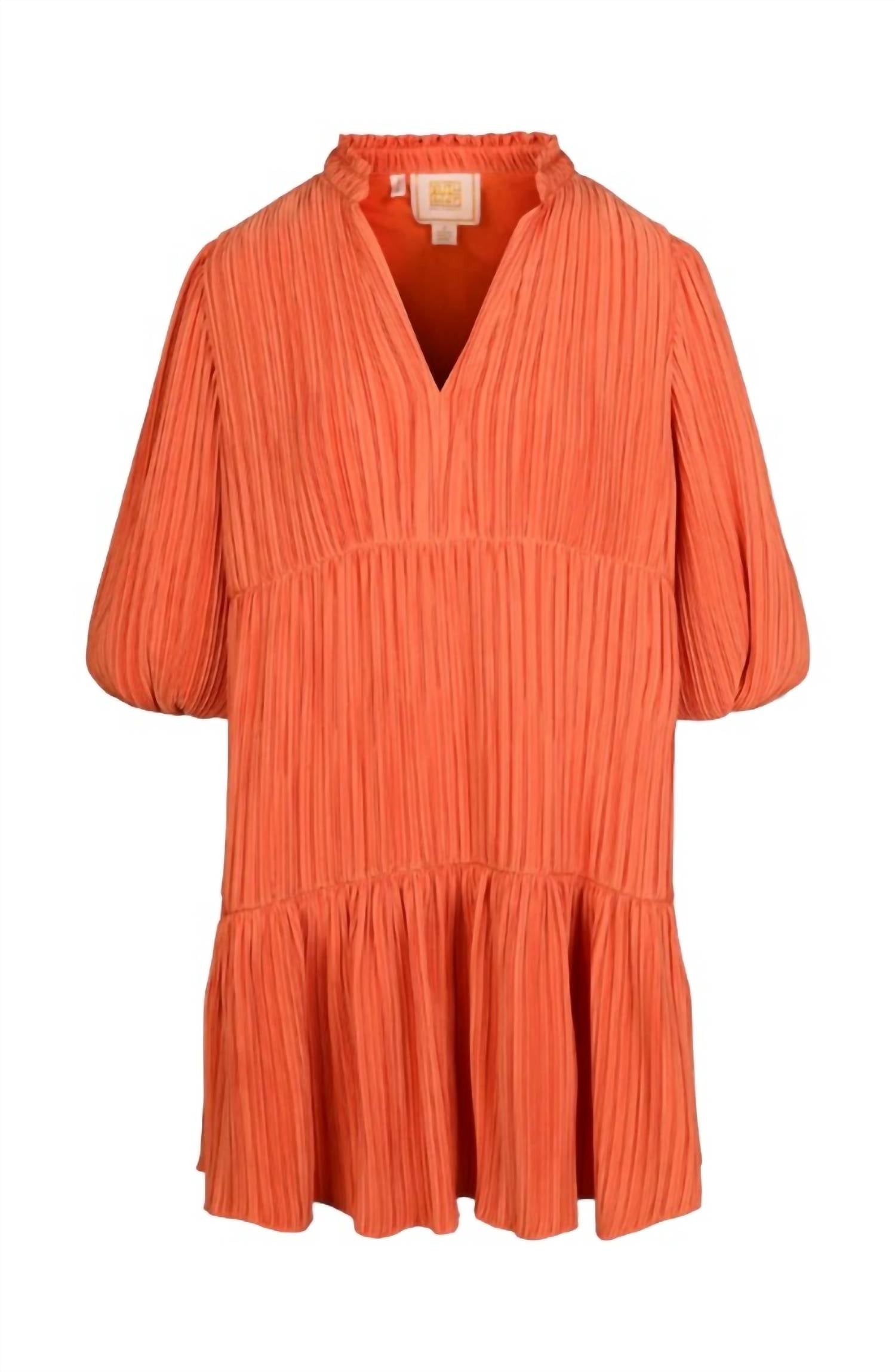 A short and breezy dress for those warmer days. The Emily McCarthy Frankie Mini Dress in Coral is a vibrant and textured style essential, perfect for spring occasions. This A-line dress features three-quarter length blouson sleeves and a Mandarin-style collar, offering a classic yet playful look. Made from 100% polyester with a polyester lining, it includes practical side pockets for convenience and is easy to wear with a pull-on closure. Care involves dry-cleaning only, with spot cleaning in cold water as needed.