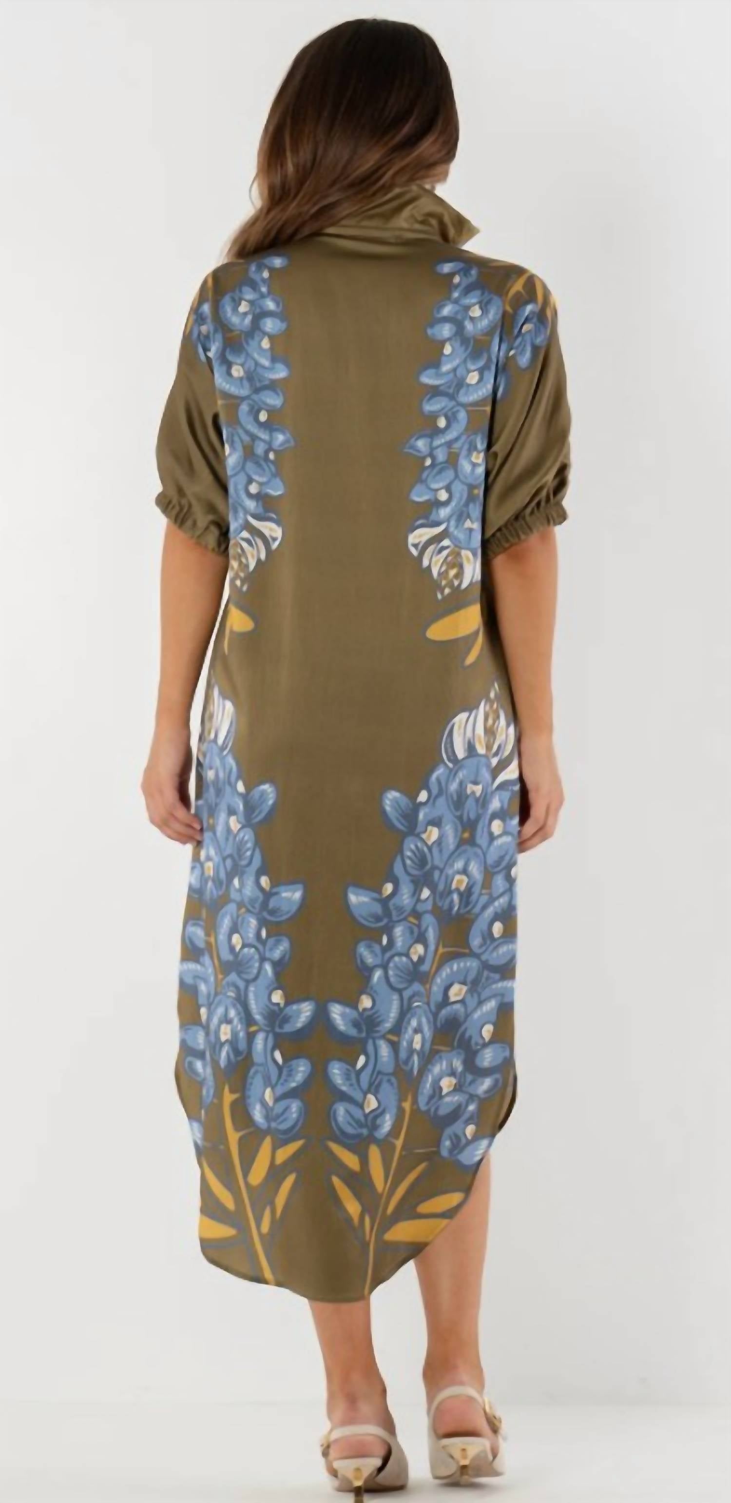 Just add slides or mules and you are good to go. The Poppy Caftan in Bluebonnet has a relaxed, loose fit with a classic stand collar and loose elastic dolman sleeves. It features a curved shirttail hem and side slits for ease of movement. Made of 59% silk and 41% cotton with a 100% polyester lining, it offers all-day comfort. Hand wash with gentle detergent in cold water, and hang dry to preserve color and shape.