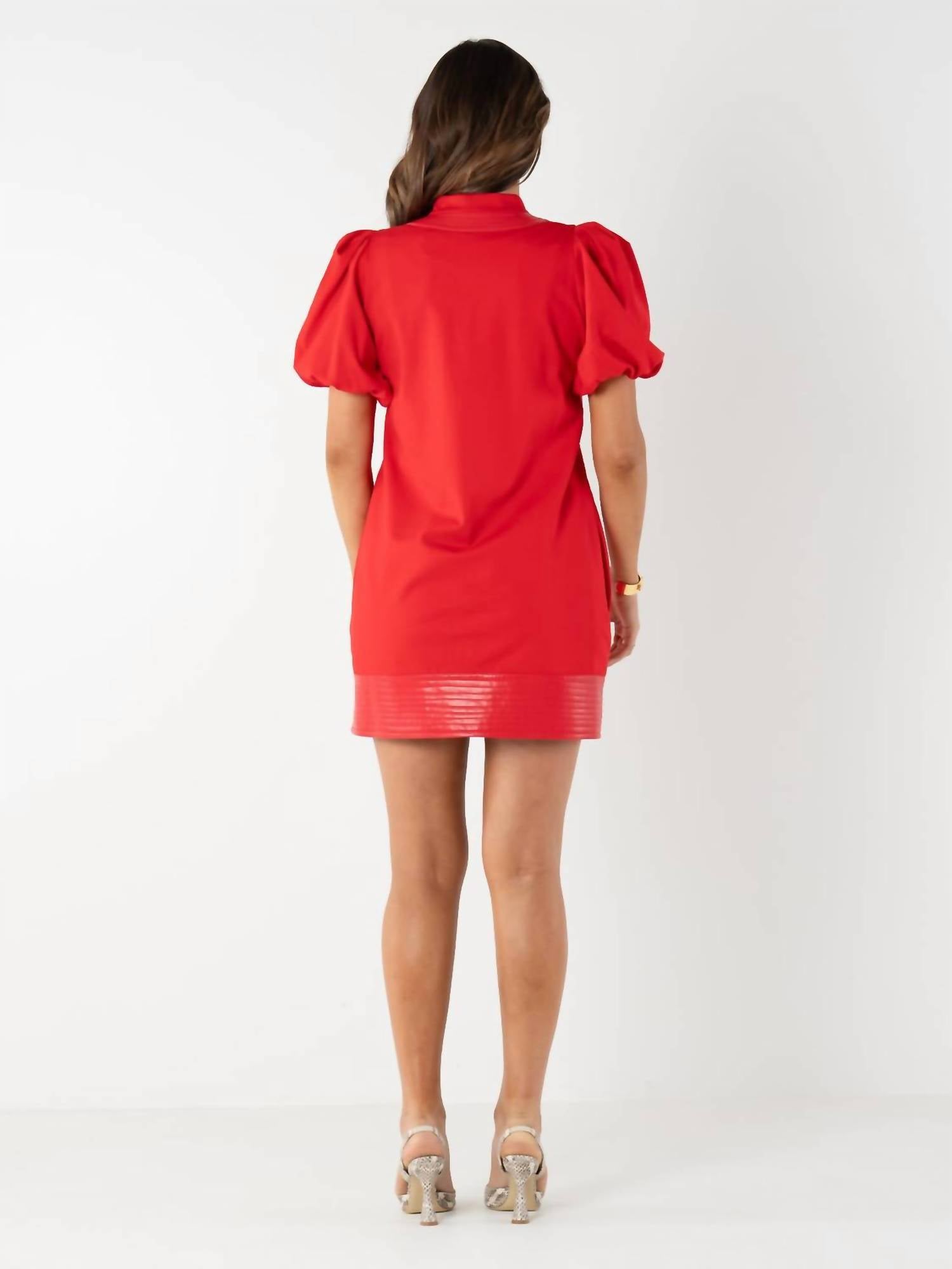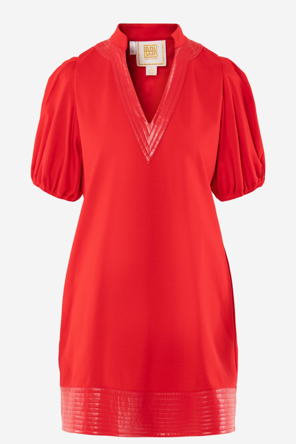 A short and breezy dress for those warmer days. Elevate your vacation wardrobe with the Women's Hampton Mini Dress by Emily McCarthy, a striking choice in High Risk Red. Featuring short sleeves and a trendy sheath silhouette, this dress is minimalist and made from lightweight Rayon, perfect for summer. The V-neck design adds a feminine touch, while its pull-on closure ensures simplicity and ease. Care instructions recommend hand washing and line drying to preserve its vibrant color and quality.