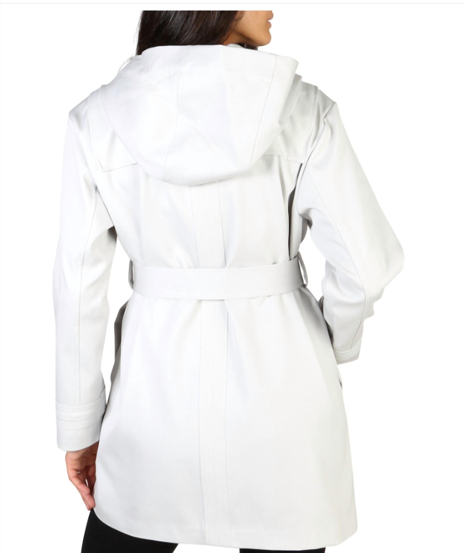 cooler temps means even cooler jackets and this stylish number doesn't dissapoint. Introducing the Women's Winter Coat by EMPORIO ARMANI, a chic addition to your fall wardrobe. It features long sleeves and is expertly crafted from 63% polyester and 37% cotton, ensuring both comfort and durability. This solid gray coat comes with a button closure and belt, while offering practicality with two external pockets. Care for it with dry cleaning to maintain its luxurious appeal. Model is 175 cm tall and wears size 42.