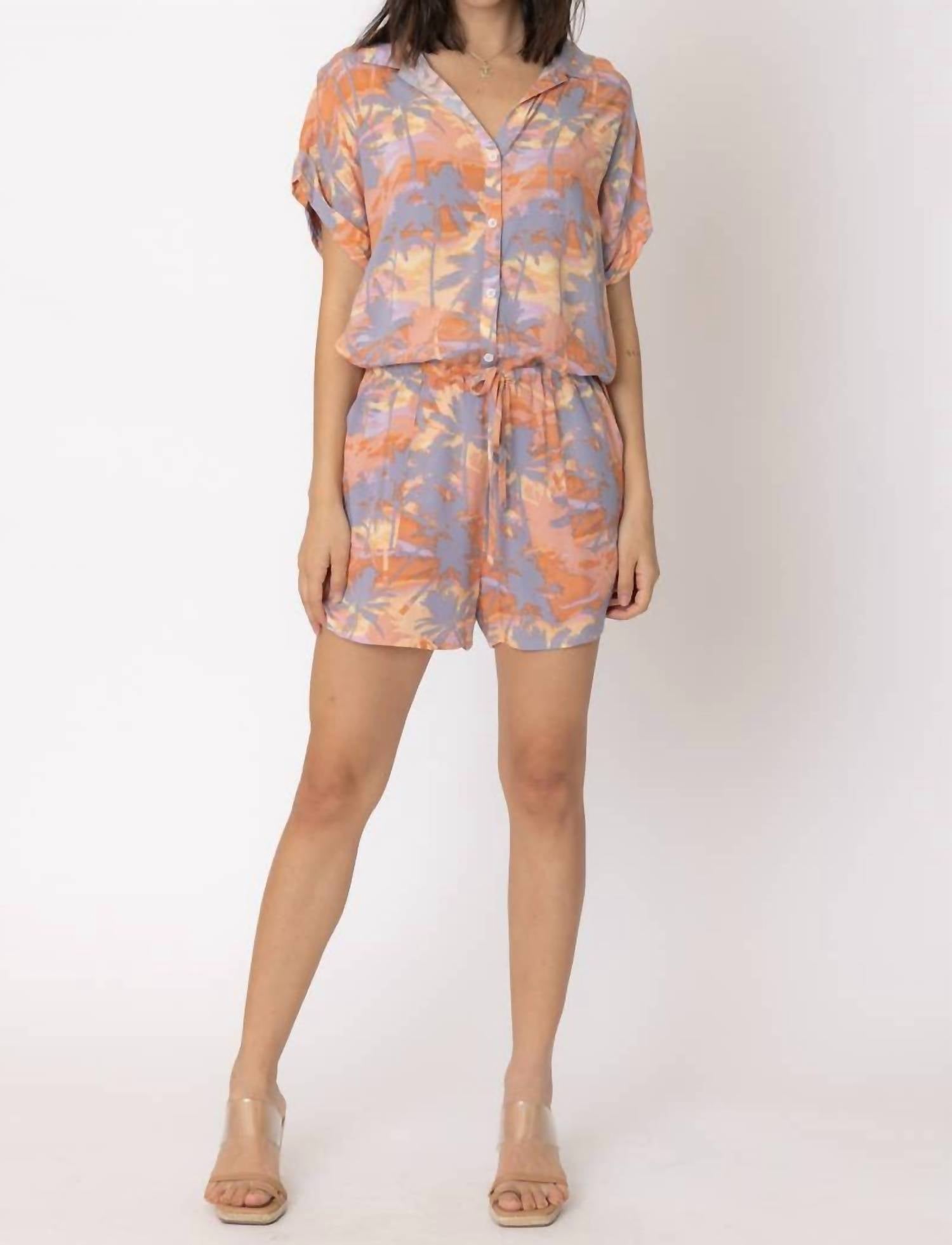 En Creme - Short Sleeve Tropical Print Romper
