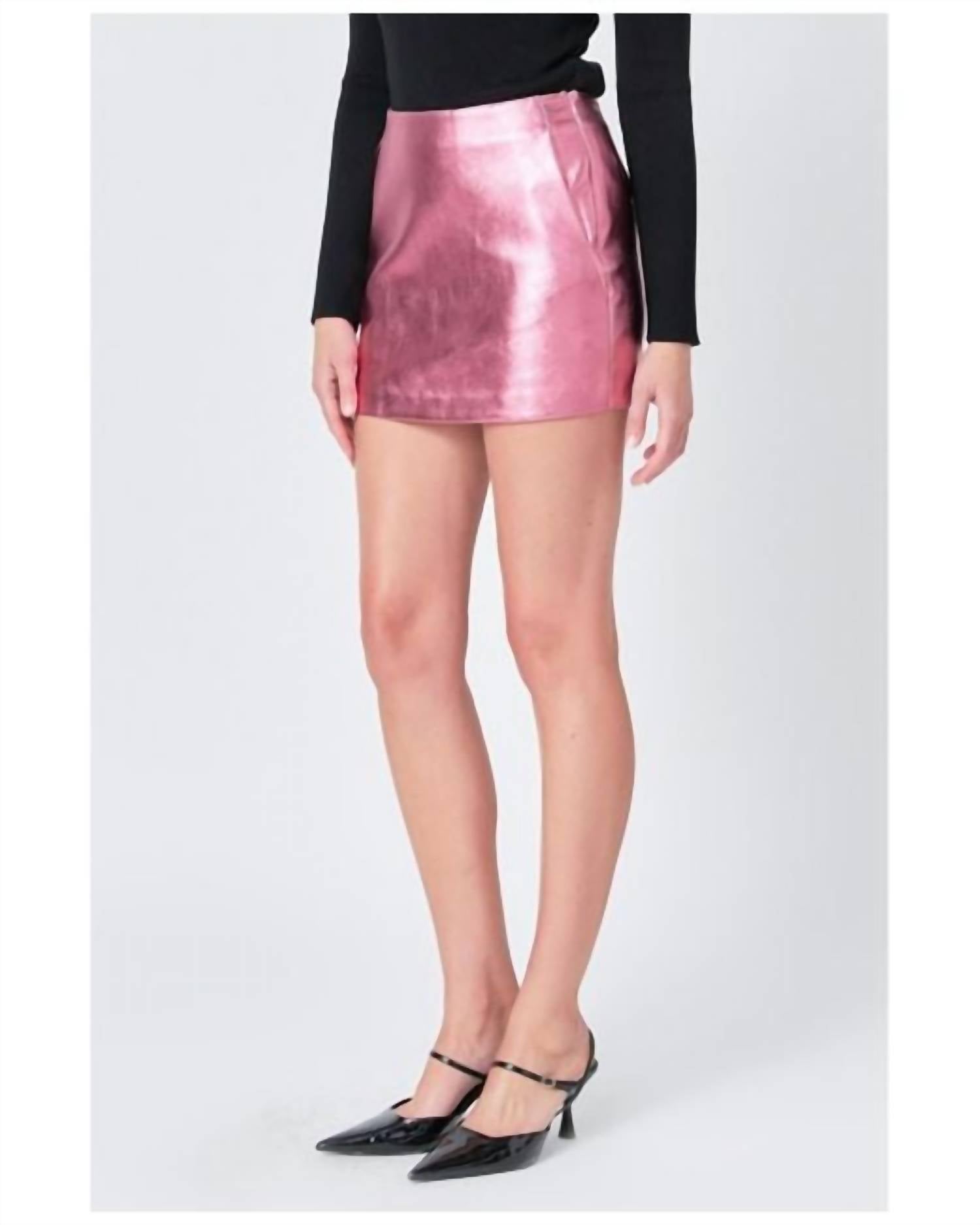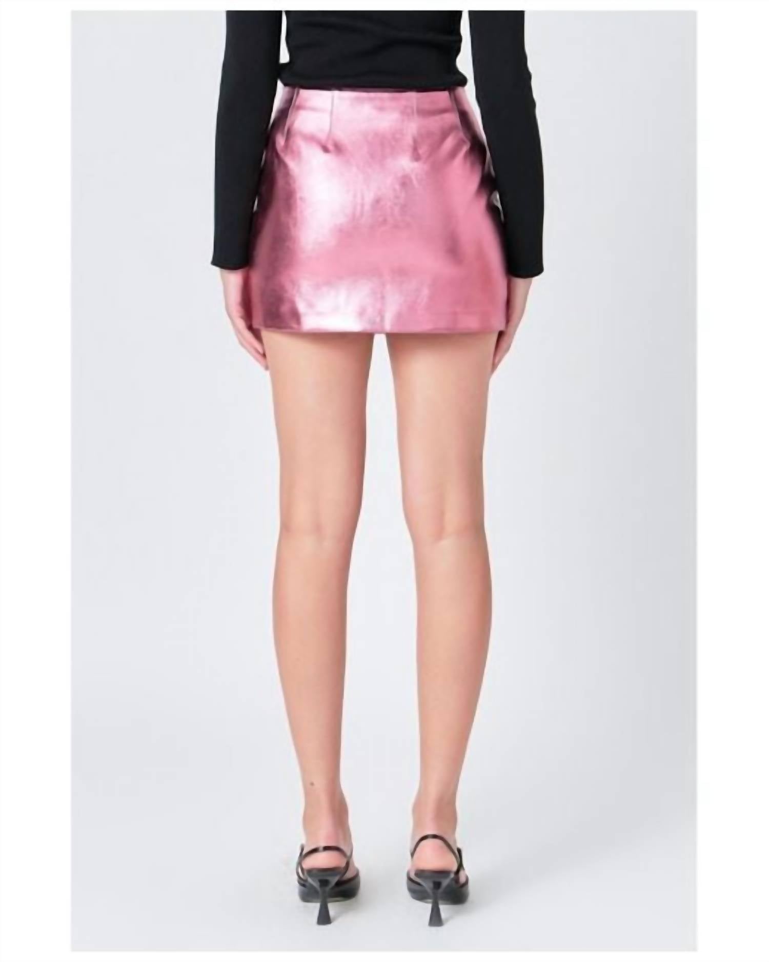 Show just the right amount of leg in this fit flattering mini. Meet the Metallic Mini Skirt by Endless Rose, a chic and versatile piece perfect for a cocktail party. This solid pink mini skirt is crafted from 100% Polyester and designed with a minimalist trend in mind. Featuring a side zipper closure, this skirt ensures a sleek fit while maintaining effortless style. Care instructions: Hand wash and line dry.