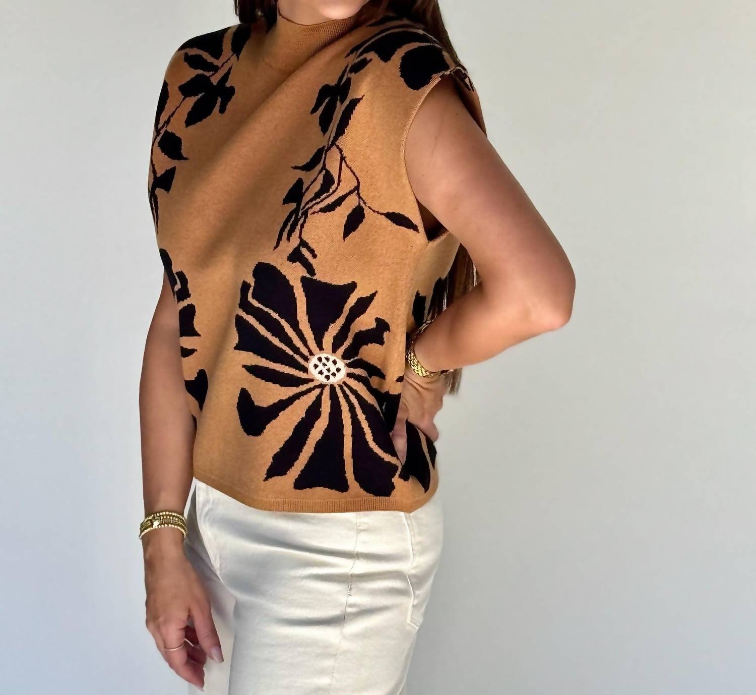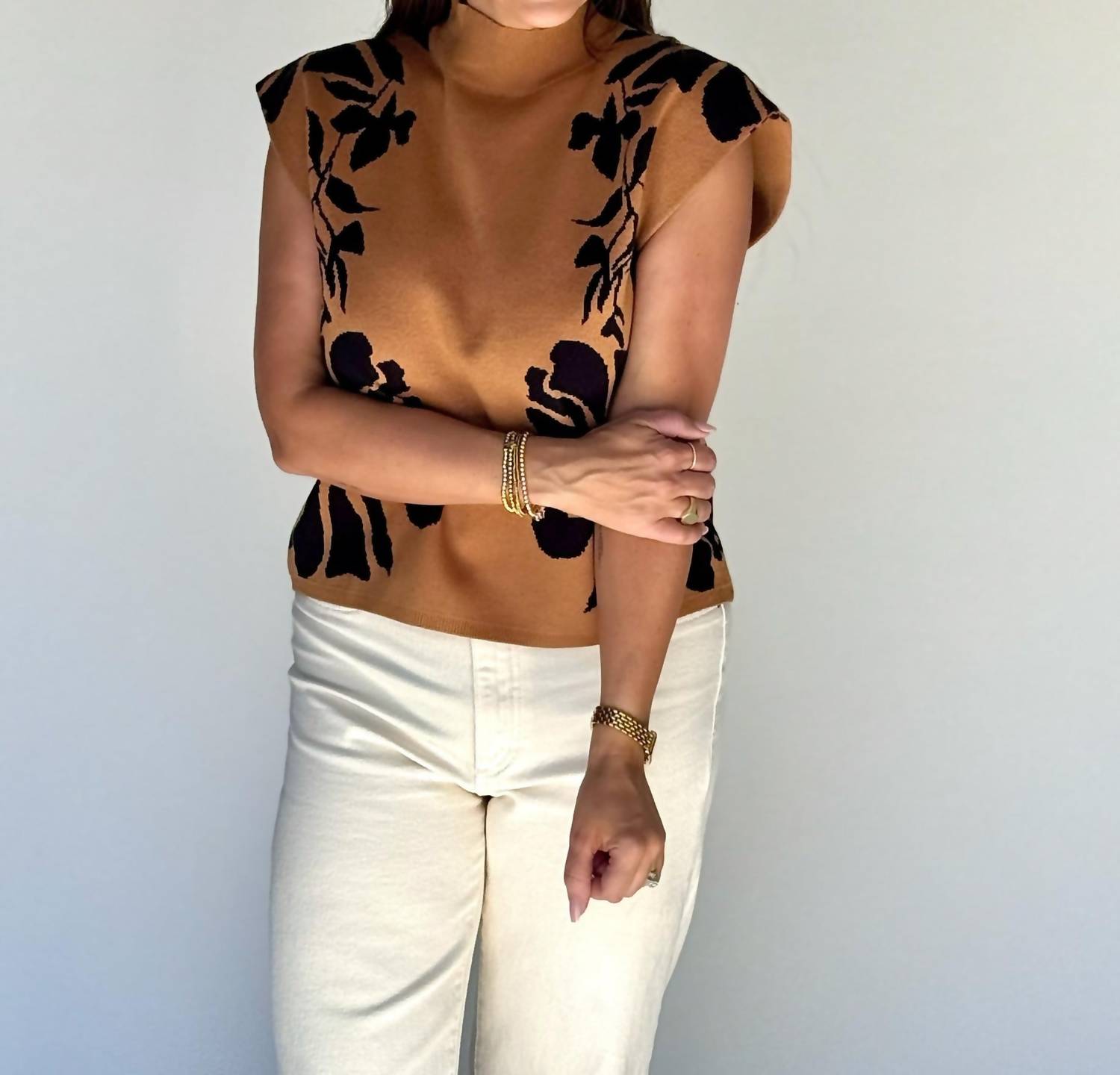 A timeless blouse that will never go out of style. Embrace timeless style with the Ashton High Neck Knit Pullover Top by Entro, a chic addition perfect for your spring wardrobe. This women's blouse, in a sophisticated brown floral pattern, features cap sleeves and a turtleneck for a 90s-inspired look. Crafted from a comfortable viscose blend with a mix of polyester and nylon, it's lightweight and breathable, ideal for vacations or your Thanksgiving celebration. Designed with a pull-on closure, this pullover requires hand washing and line drying to maintain its pristine look.