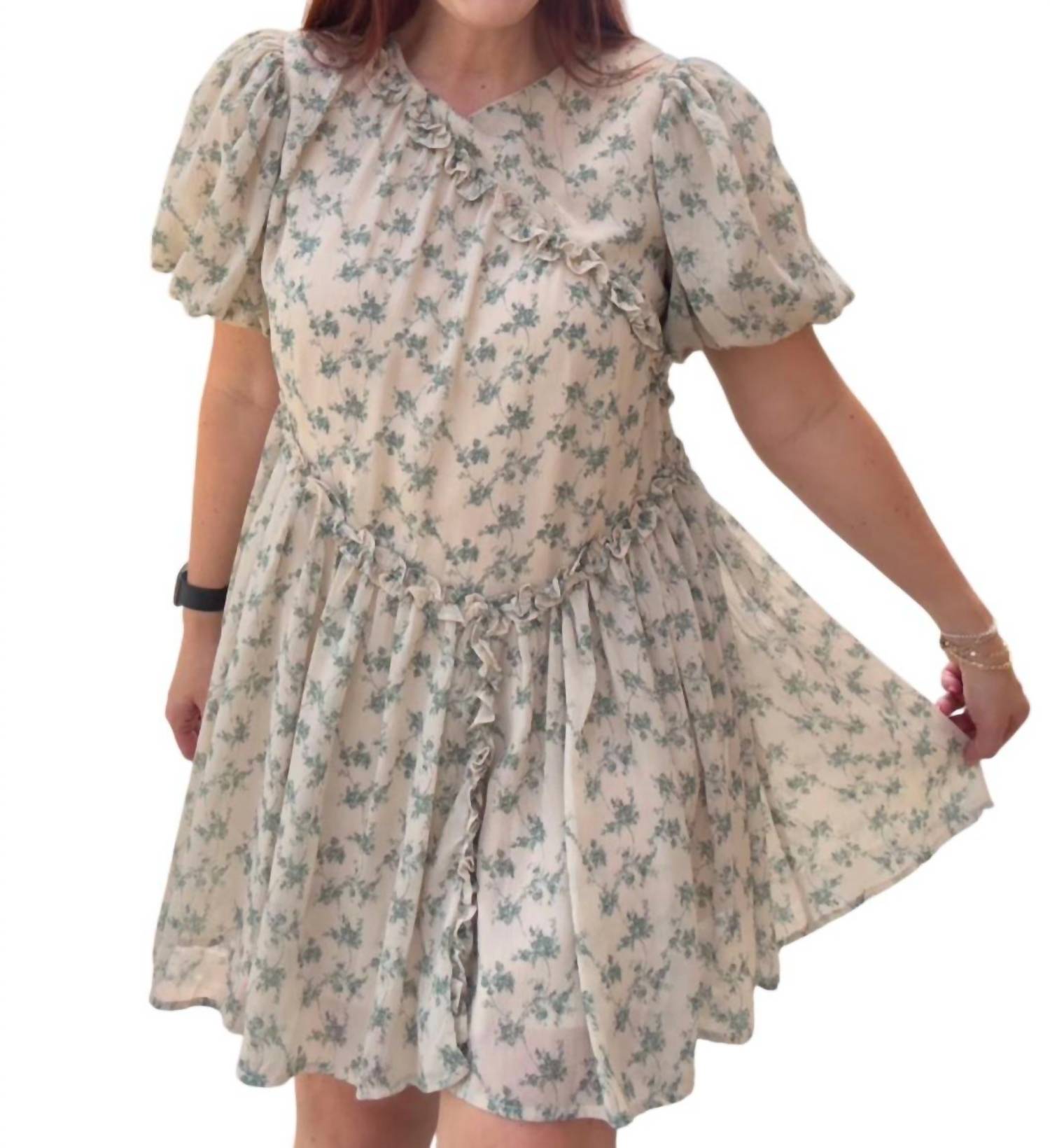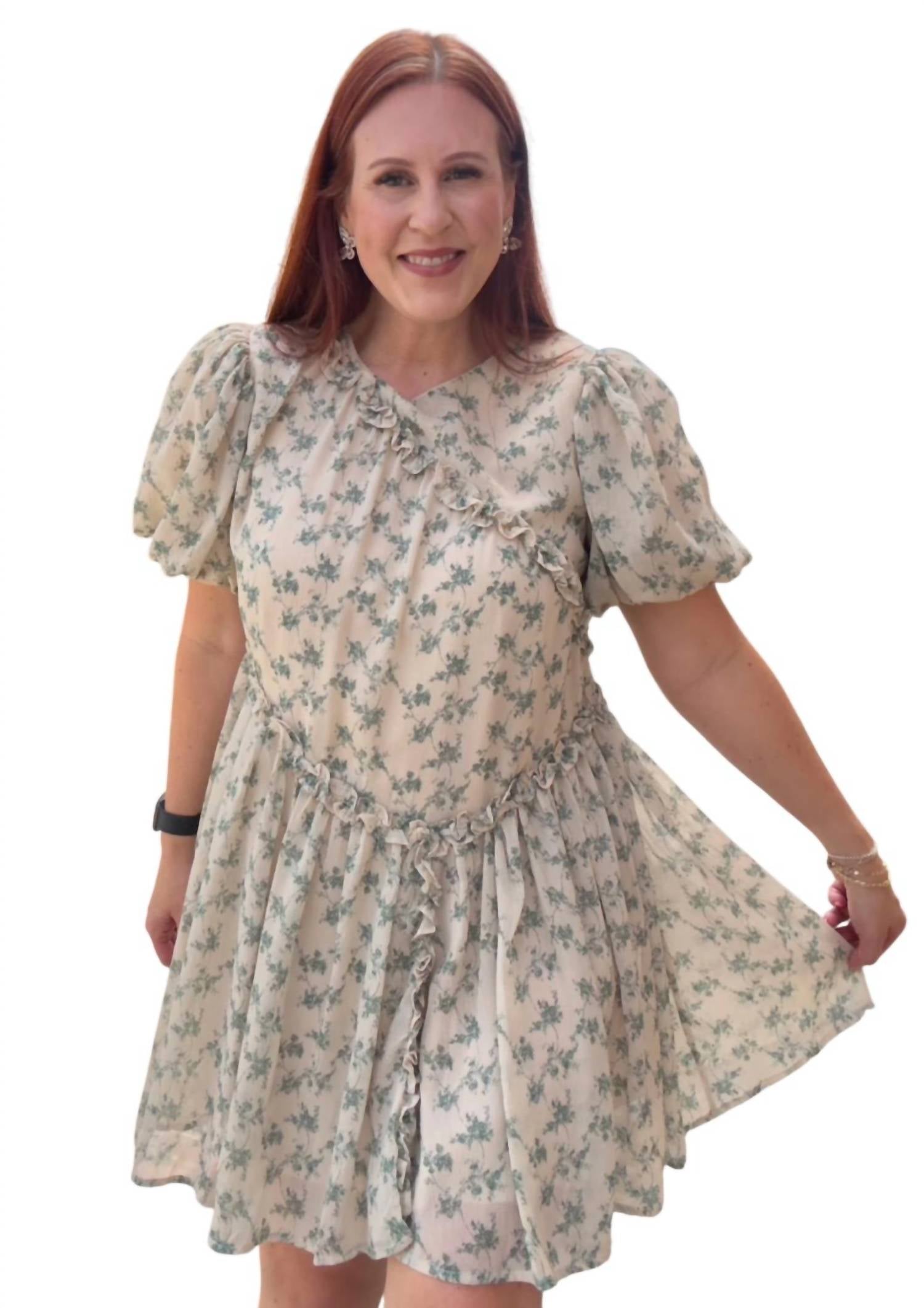 The kind of easy and flattering dress you'll be reaching for all season long. Discover the Emery Dress by Entro, a captivating addition to any wardrobe with its charming floral print and boho chic flair. This summer-ready, short-sleeved shift dress features playful ruffle trim detailing and a sophisticated button closure at the back. Designed for women with a crewneck silhouette, it offers a breezy fit that's ideal for holiday parties. Its lightweight fabric enhances comfort, promising style and grace on any occasion.