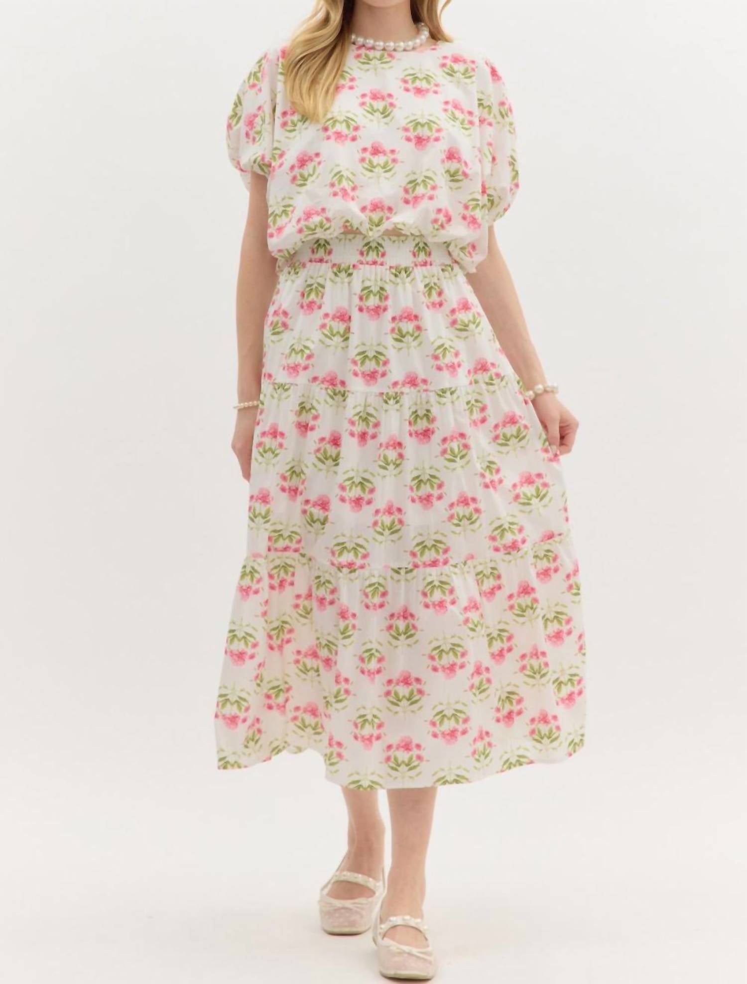 Show off just the right amount of skin in this beautifuly designed midi length skirt. The Floral Print Bubble Hem Pullover Top by Entro is perfect for adding a touch of elegance to your wardrobe. Designed in a delightful multi-color floral pattern, this waist-length top features a single button keyhole back closure. Made from a woven, lightweight, and non-sheer fabric, it offers comfort and style for any spring vacation outing. Available in bust sizes: small 40", medium 42", large 44" and lengths: small 18", medium 19", large 20".