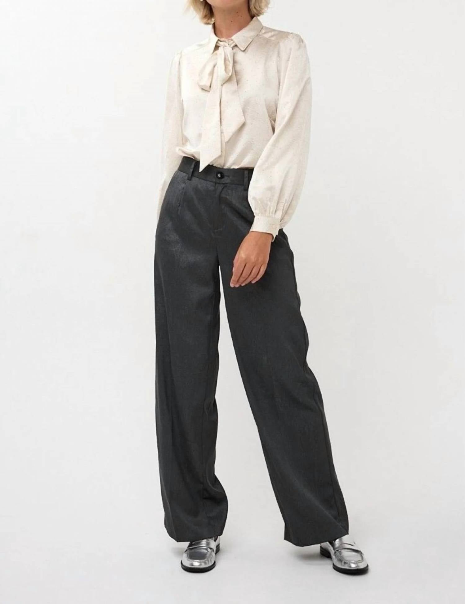 A versatile blouse that works from desk to dinner! EsQualo Bow-Tie Blouse | Style W25-14713 This elegant EsQualo blouse features a soft, silky feel with a subtle textured finish and delicate shimmer throughout. Designed with a classic button-front silhouette, it showcases a feminine bow-tie neckline and gently puffed long sleeves with button cuffs for a refined, timeless look. Perfect for work, special occasions, or dressing up denim with effortless sophistication. ✨ Details: • Bow-tie neckline • Button-front closure • Long sleeves with gathered shoulders • Button cuffs • Subtle textured pattern with soft sheen • Relaxed yet polished fit 🧵 Fabric: 100% Polyester 🧺 Care: Hand wash cold, lay flat or hang to dry Style it with tailored trousers, a pencil skirt, or your favorite jeans for an elevated everyday outfit.