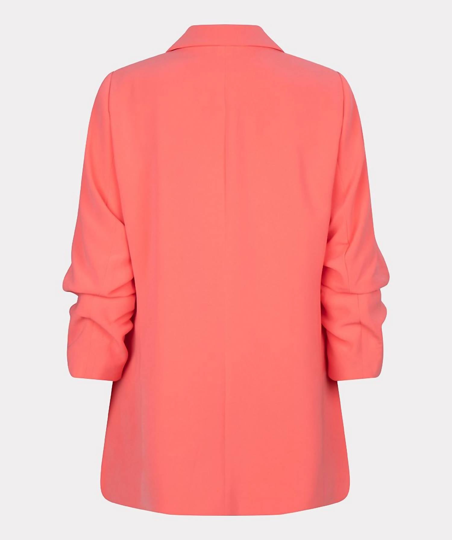 A blazer so versatile you can wear it to the office or pair it with jeans for a more casual look. Elevate your wardrobe with the Rouched Sleeve Blazer by ESQUALO, featuring modern smocked long sleeves in a vibrant coral hue. Crafted from a blend of 93% polyester and 7% spandex, this piece offers both comfort and style for any occasion. With a chic 72 cm length in size 36/S, this blazer includes a practical button closure and pockets, accentuated by a classic collar neckline. Ideal for diverse styling, this blazer promises a sophisticated, contemporary fit.