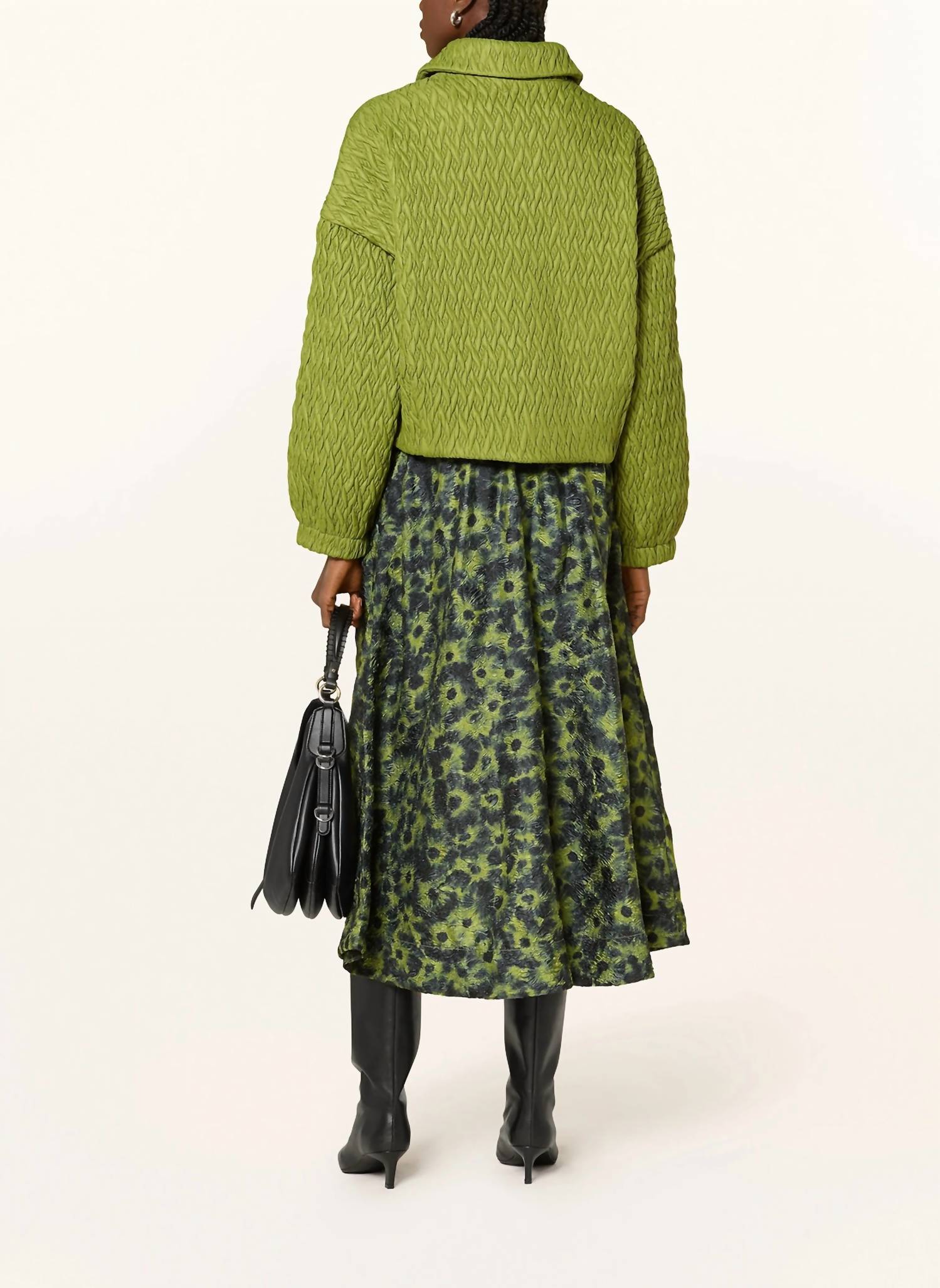 The midi length skirt is here to stay and we especially love this style. Elevate your spring wardrobe with the Isebel Elasticated Midi Skirt by ESSENTIEL ANTWERP in a chic Brat Olive floral pattern. This women's skirt is crafted from 100% polyester jacquard-woven fabric that offers a subtle luster and designed in a flattering A-line silhouette, featuring a high-rise elasticated waistband for comfort. Complete with slanted pockets and a convenient pull-on closure, the skirt is perfect for Easter engagements and boasts a trendy Boho Chic appeal. Care instructions recommend hand washing to ensure longevity.