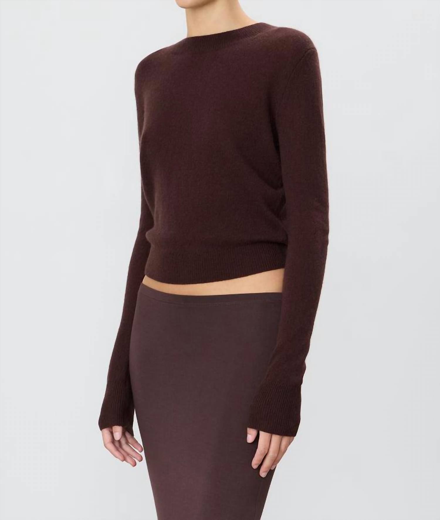 The ultimate go-to sweater, expertly crafted to provide the perfect combination of warmth and style. Its classic design and soft fabric make it a must-have addition to your wardrobe. The Eterne Francis Cashmere Sweater in Espresso is an ultra-soft, long-sleeve essential for your fall wardrobe. Crafted from 100% cashmere, this solid, slightly cropped sweater features a crewneck design and offers a slim fit. It boasts a minimalist style, perfect for vacation occasions or everyday wear. Closure: Pull on. Care: Dry clean.