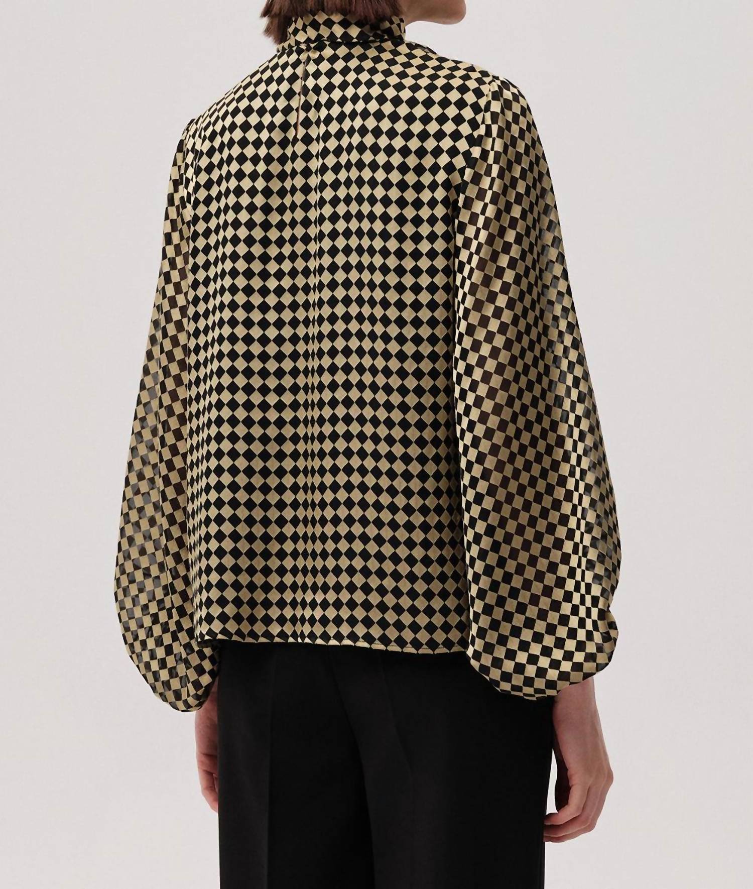A versatile blouse that works from desk to dinner! Introduce a sophisticated touch to your wardrobe with the Daina Balloon Sleeve Blouse by EXQUISE, crafted from a soft viscose blend. This standout piece features long balloon sleeves and a striking gold and black gingham pattern, making it perfect for engagement events and other semi-formal occasions. Designed with a turtleneck and tie closure, the blouse offers versatility, allowing you to adjust the neckline to suit your style. Care for this beautiful blouse is simple and efficient, with machine washing and line drying recommended.
