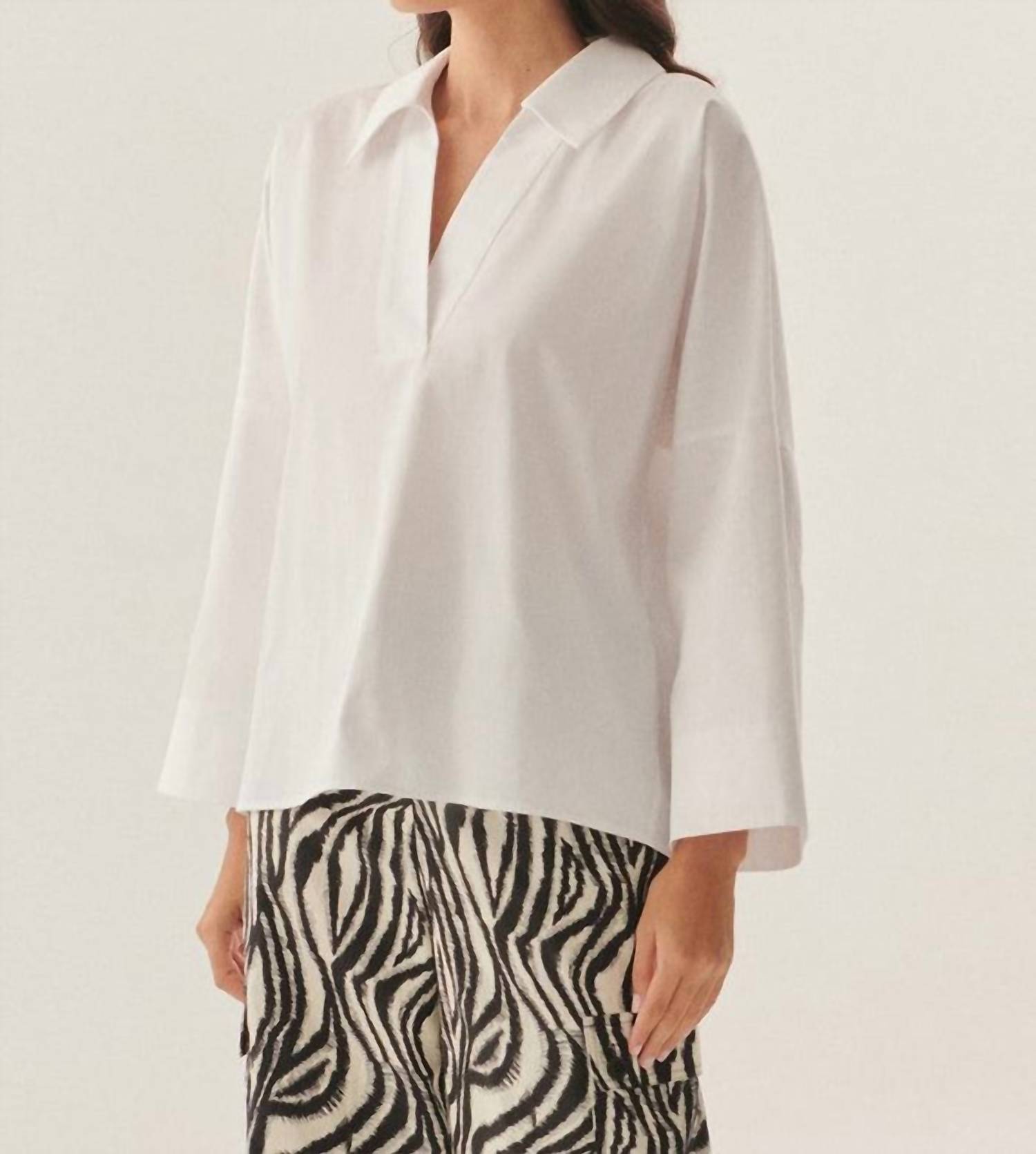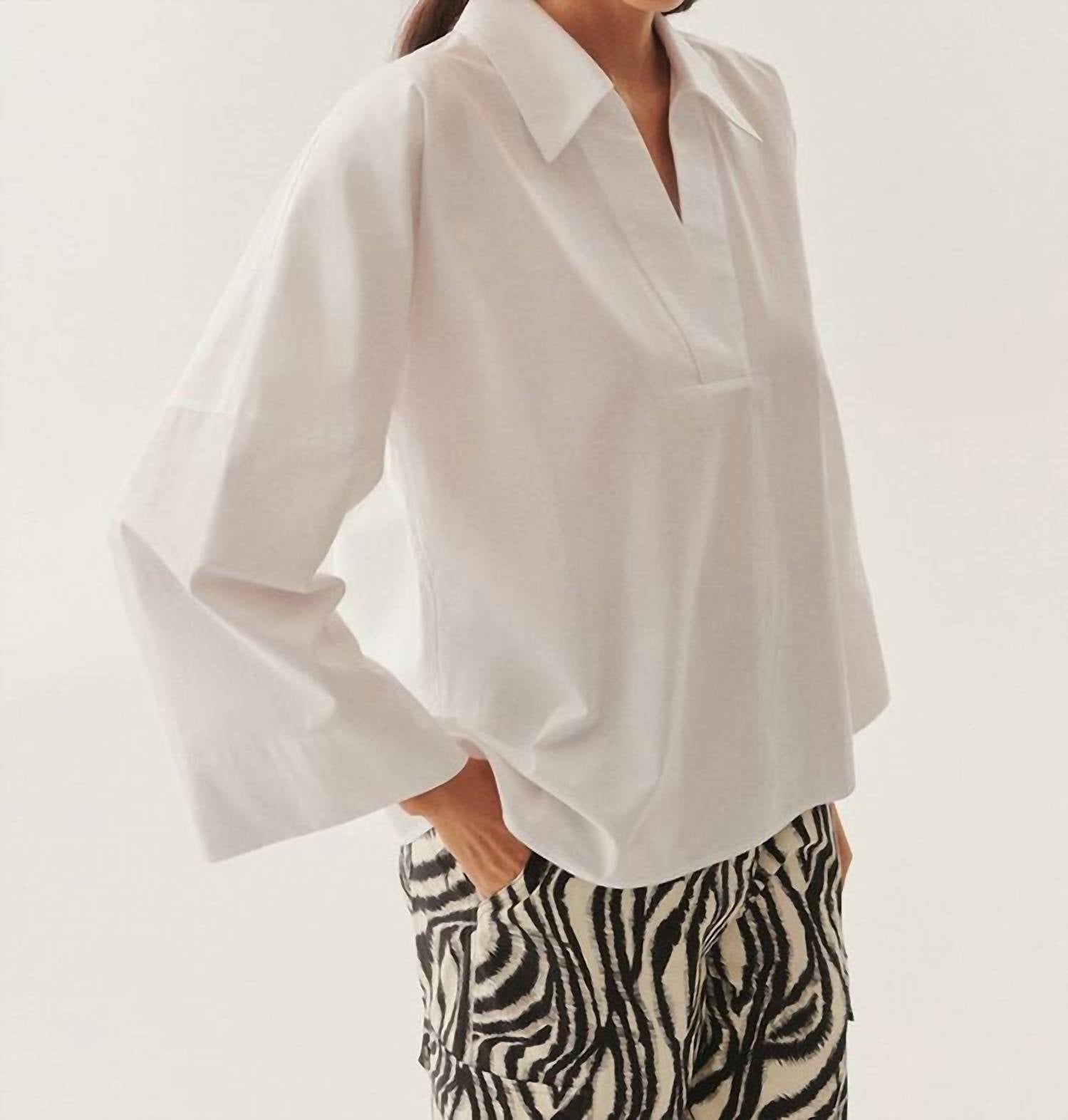 Exquise - Lucia Collared Poplin V-neck Blouse