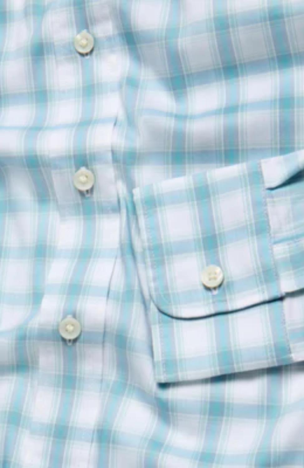 Introducing the Men's Movement Long Sleeve Shirt by Faherty, a stylish addition to your summer wardrobe in Belle Isle Plaid. This cotton blend shirt features a spread collar with concealed buttons, a button front and cuffs, and a shirttail hem for a polished look. With a composition of 55% Supima® Cotton, 25% Recycled Nylon, 16% TENCEL™ Lyocell, and 4% Spandex, it offers comfort and sustainability. Closure: Button closure. Made for versatility, it's ideal for both a workwear look or holiday parties. Care: Machine wash and line dry.