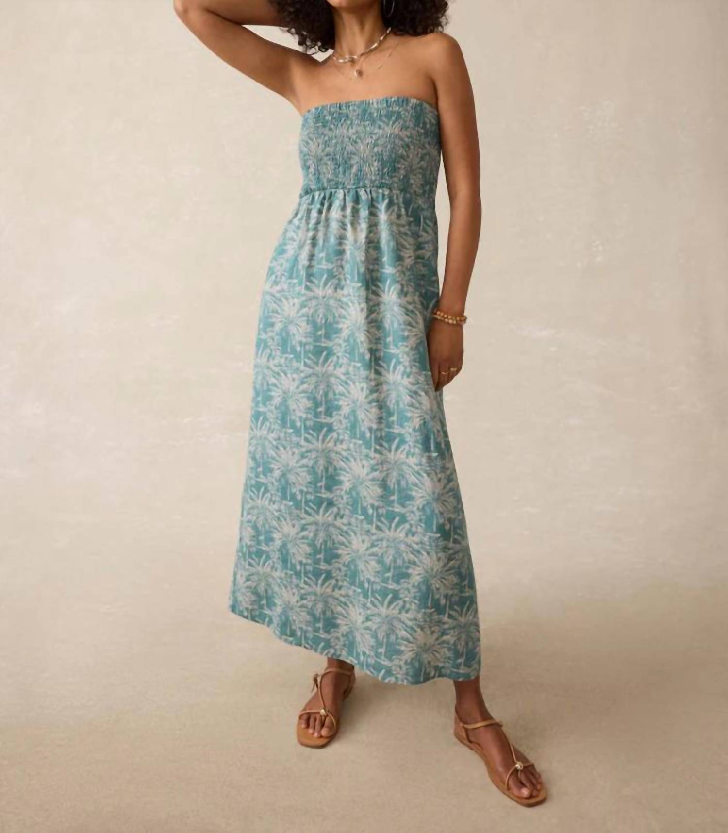 The perfect length dress does exist. Introducing the Faherty Sunrise Smocked Dress, an essential summer piece in a vibrant Maui Tropics print. This midi-length dress, cut from 100% linen, features spaghetti straps and a smocked bodice with encased elastic for a perfect fit. The pull-on style ensures ease, while removable straps offer versatile styling from beach to dinner. Care for this boho chic number by turning it inside out for a machine wash on a gentle cycle and laying flat to dry.
