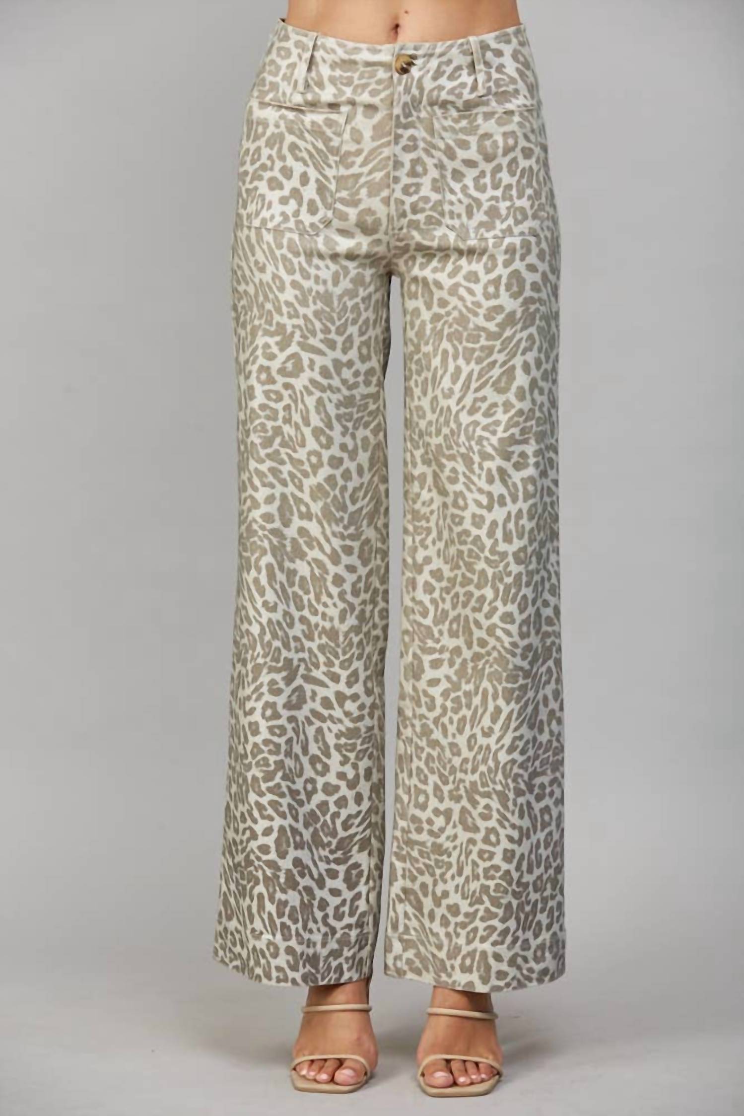 Fate - Celina Metallic Animal Print Wide-leg Pants