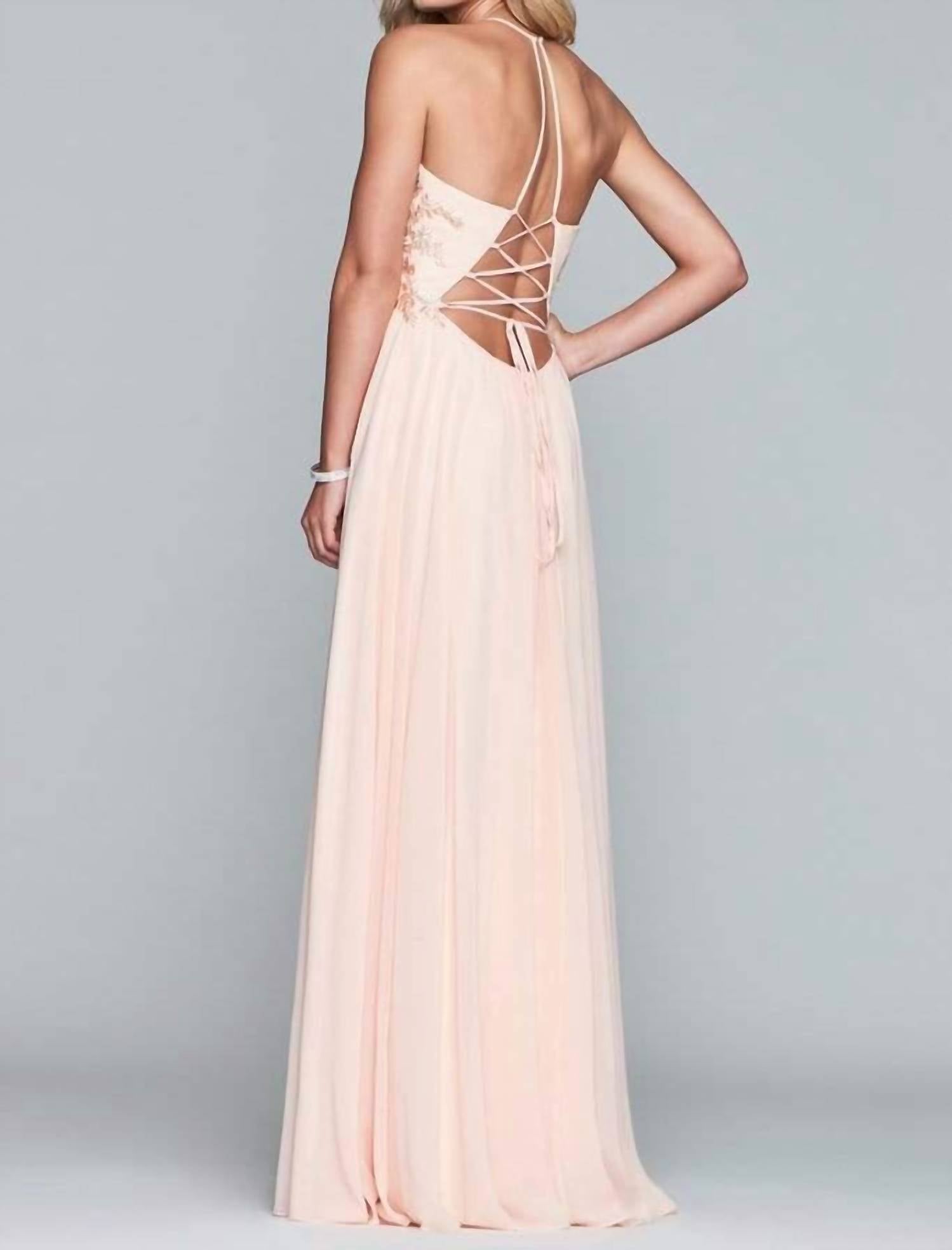 Faviana - Halter Lace Up Back Gown