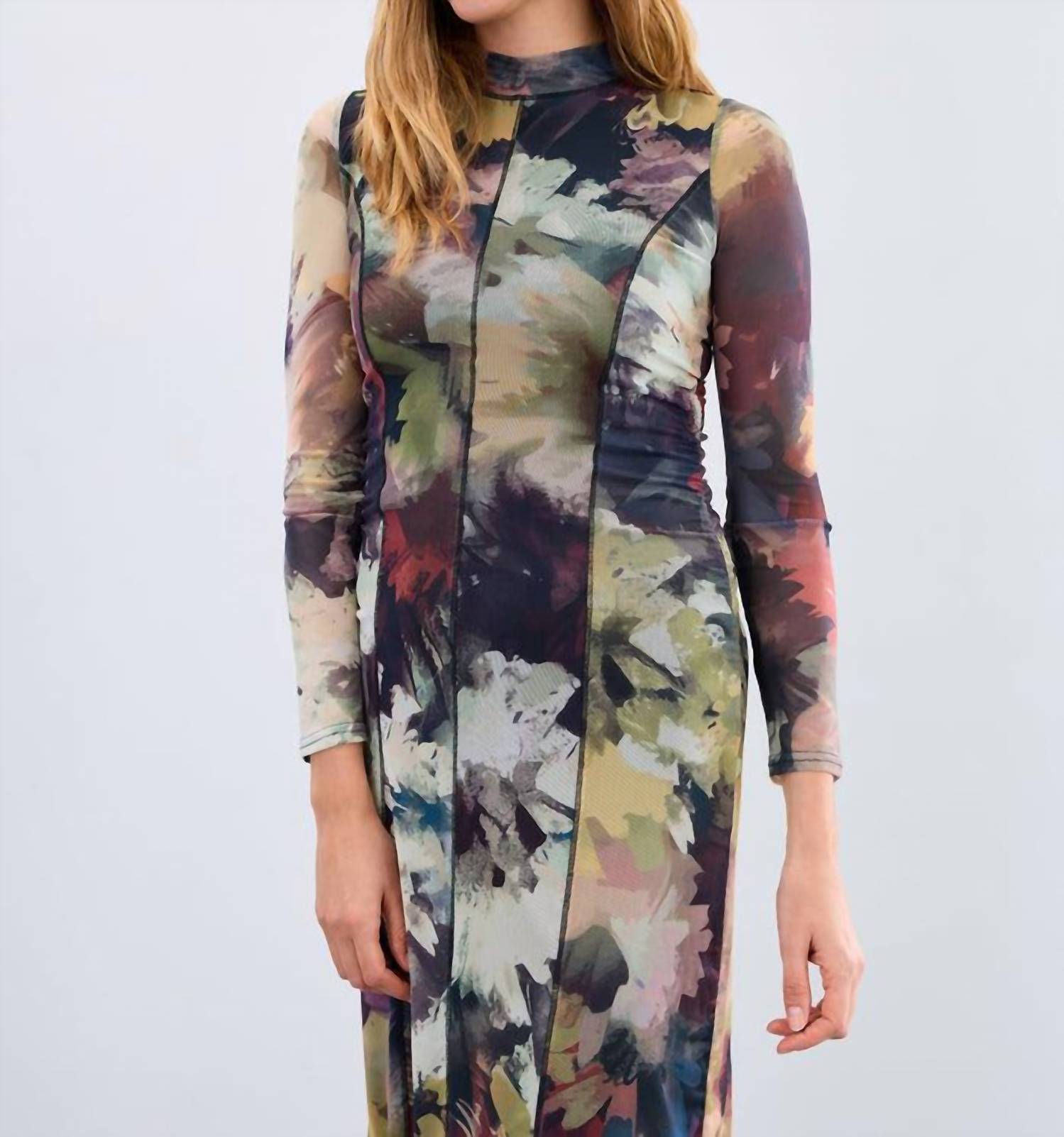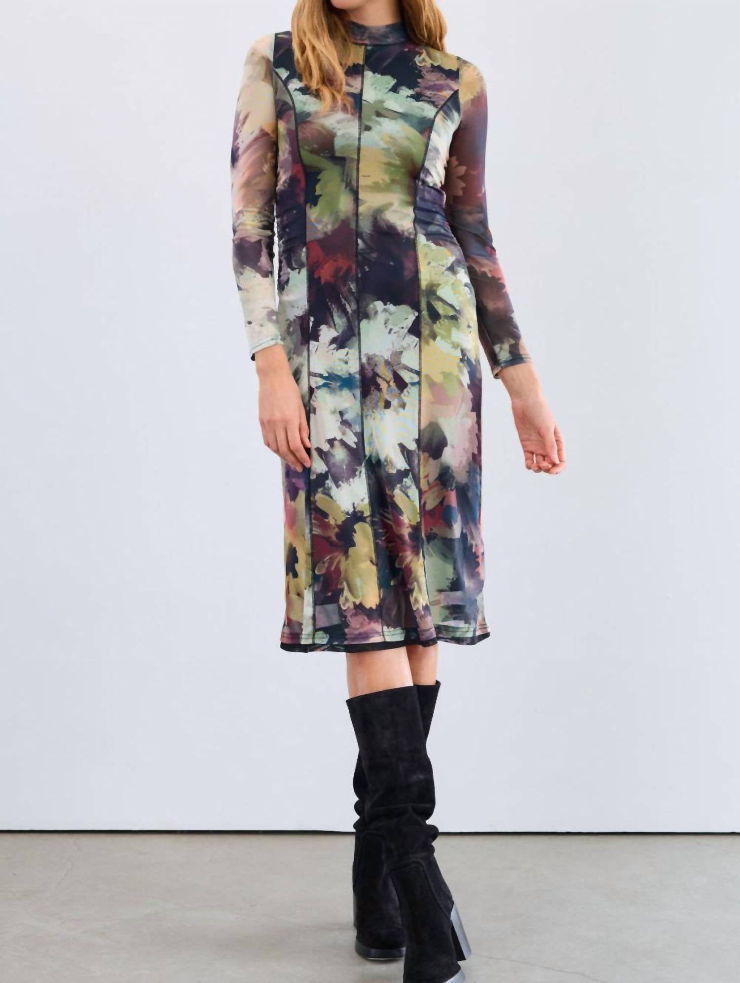 A midi dress so versatile, your options for wearing it are endless. Unveil your vibrant style with the Abstract Floral Mesh Midi Dress by FDJ, featuring long sleeves and a mockneck design. Crafted from a blend of 95% polyester and 5% elastane, it offers a comfortable and flattering sheath silhouette. Care instructions recommend hand washing and laying flat to dry, making it perfect for any garden party or special occasion, especially during spring and Easter celebrations.