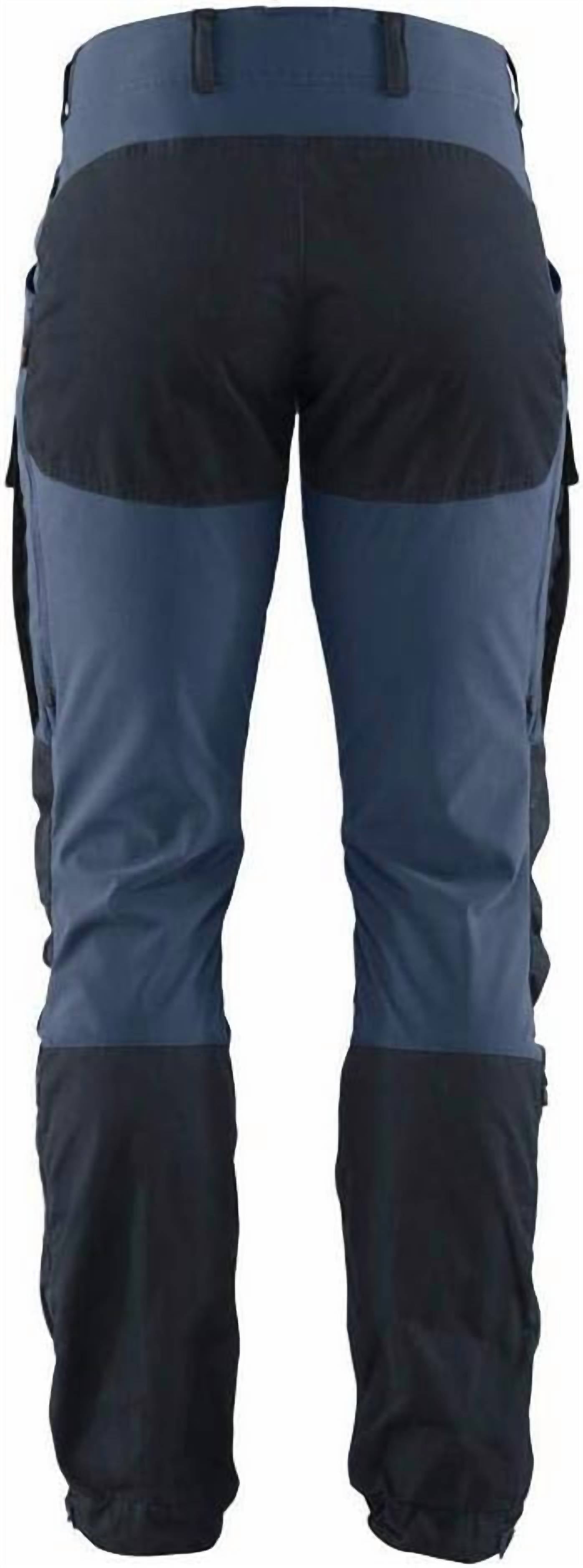 Introducing the Fjallraven Men's Keb Trousers in Dark Navy/Uncle Blue, designed for durability and functionality in high-altitude environments. These trousers feature a solid pattern and a straight leg style, crafted from robust Polyamide material for a classic fit. The G-1000 fabric ensures they are windproof and waterproof, with added reinforcement at the back and knees for extra resilience. Practical cargo style is secured with a button closure, while pockets offer convenience. Ideal for summer workwear, these trousers can be easily maintained with machine washing.