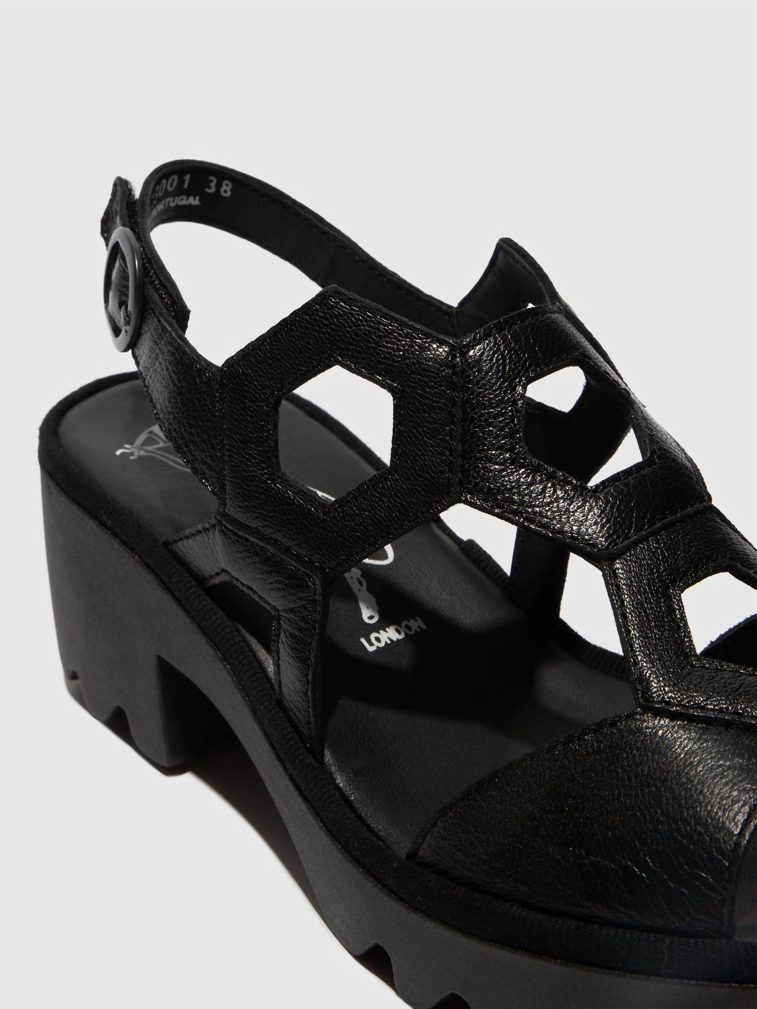 Flowy dresses, cropped pants, and even jumpsuits... this sandal works with them all! Discover the FLY LONDON® Women's Sling-back Sandals, perfect for adding timeless charm to your look. These sleek sandals feature a leather upper and block heel with a 2.5-inch height. A buckle closure on the ankle strap ensures a secure fit, while geometric cutouts offer a stylish touch. Completed with a rubber outsole, these sandals are crafted in Portugal for assured quality.