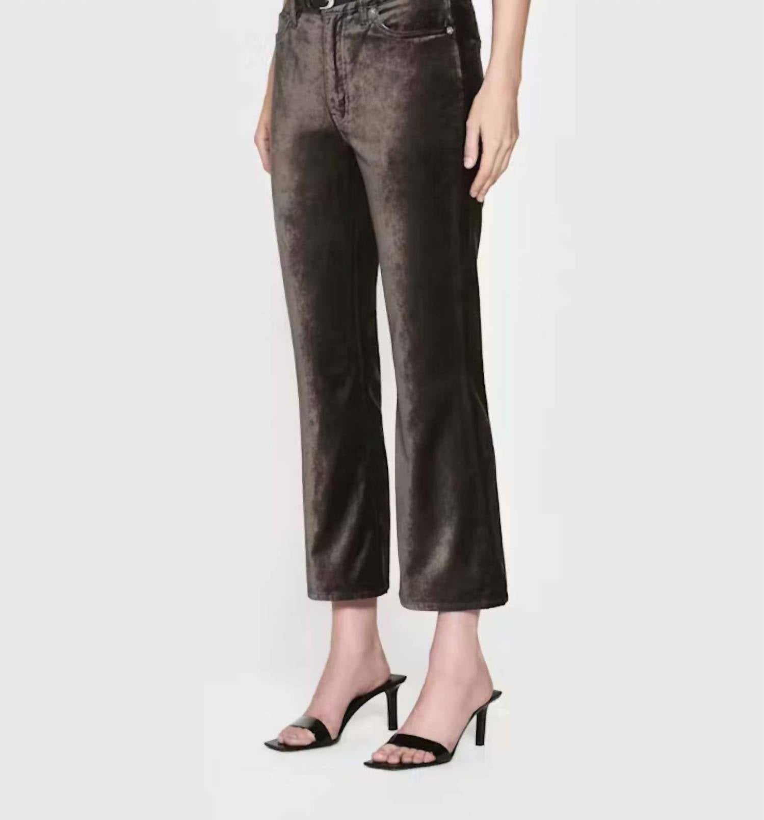 The trend report says boot-cut is in and that's exactly why we love this style. They are fit to perfection, flattering on any body type, and comfortable. They will be your go-to all season long. Experience the sophisticated style of the Le Crop Mini Boot Pants by FRAME, designed for women who love a chic, textured look. These pants feature a high rise with a 10.5" front rise, 26.5" inseam, and an 18" leg opening, all in a flattering cropped length and slight bootcut kick at the knee. Made from a luxurious stretch velveteen cotton blend (54% Cotton, 44% Rayon, 2% Elastane), they offer a comfortable fit while maintaining a sleek silhouette. Closure: Button closure. Care: Dry clean only. Imported and perfect for any summer streetwear occasion.