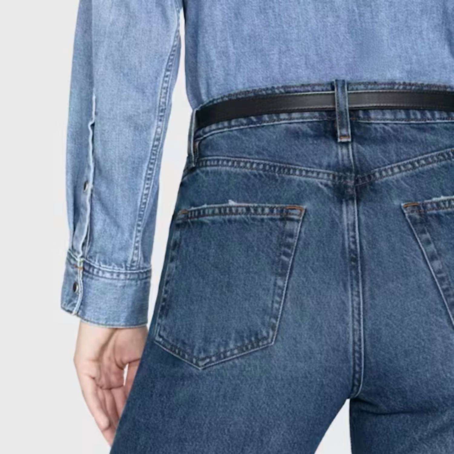 We especially love this cropped jean with a cute pair of slides or sandals. Introducing the Le Jane Crop Jeans by FRAME, a chic addition to any wardrobe, offered in the solid Caramia color. These high-rise jeans feature a zip closure and are expertly crafted from 80% regenerative cotton and 20% post-consumer recycled cotton, offering a sustainable choice with a vintage feel. The design includes a flattering cropped length, a relaxed fit through the thighs, and straight legs with dimensions of 11.75" front rise, 27" inseam, and a 17.5" leg opening. Perfect for travel or spring workwear occasions, these luxury jeans come with practical pockets and are machine washable with tumble dry instructions.