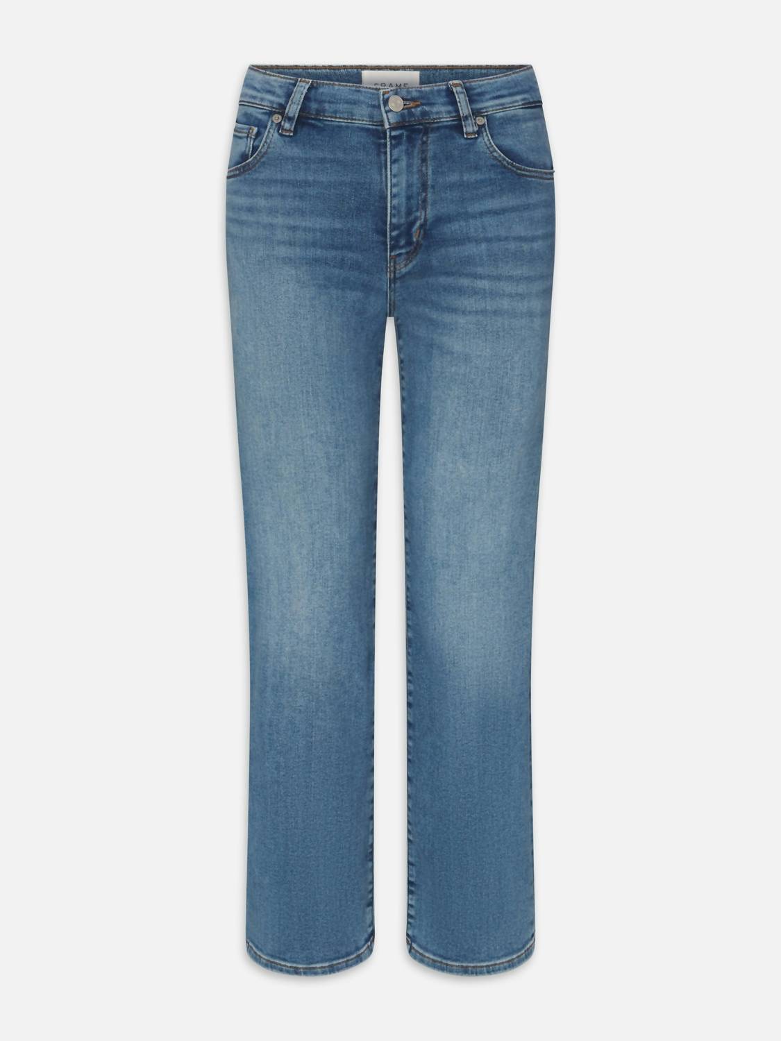 These must-have jeans are fit to perfection. Embrace casual elegance with the Mellow Mid-rise Jean by FRAME, crafted from a super-stretch cotton blend to fit you perfectly. These jeans feature a mid-rise fit and a trendy slim wide leg with a light wash, ideal for the modern wardrobe. With a zip closure and practical pockets, they offer style and convenience. Composition: 79% Cotton, 15% Lyocell, 4% Elasterell-P, 2% Elastane. Machine wash cold and tumble dry. Inseam: 27.5”, Front Rise: 10”, Leg Opening: 18”. Model is 5'10" and wears a size 25.