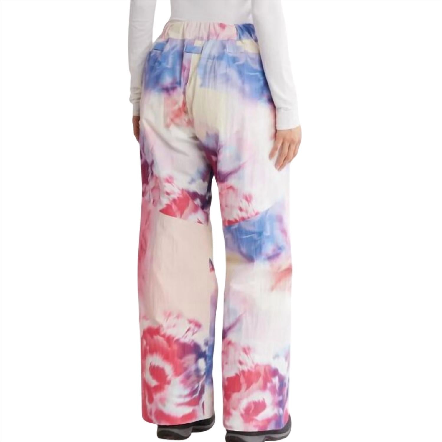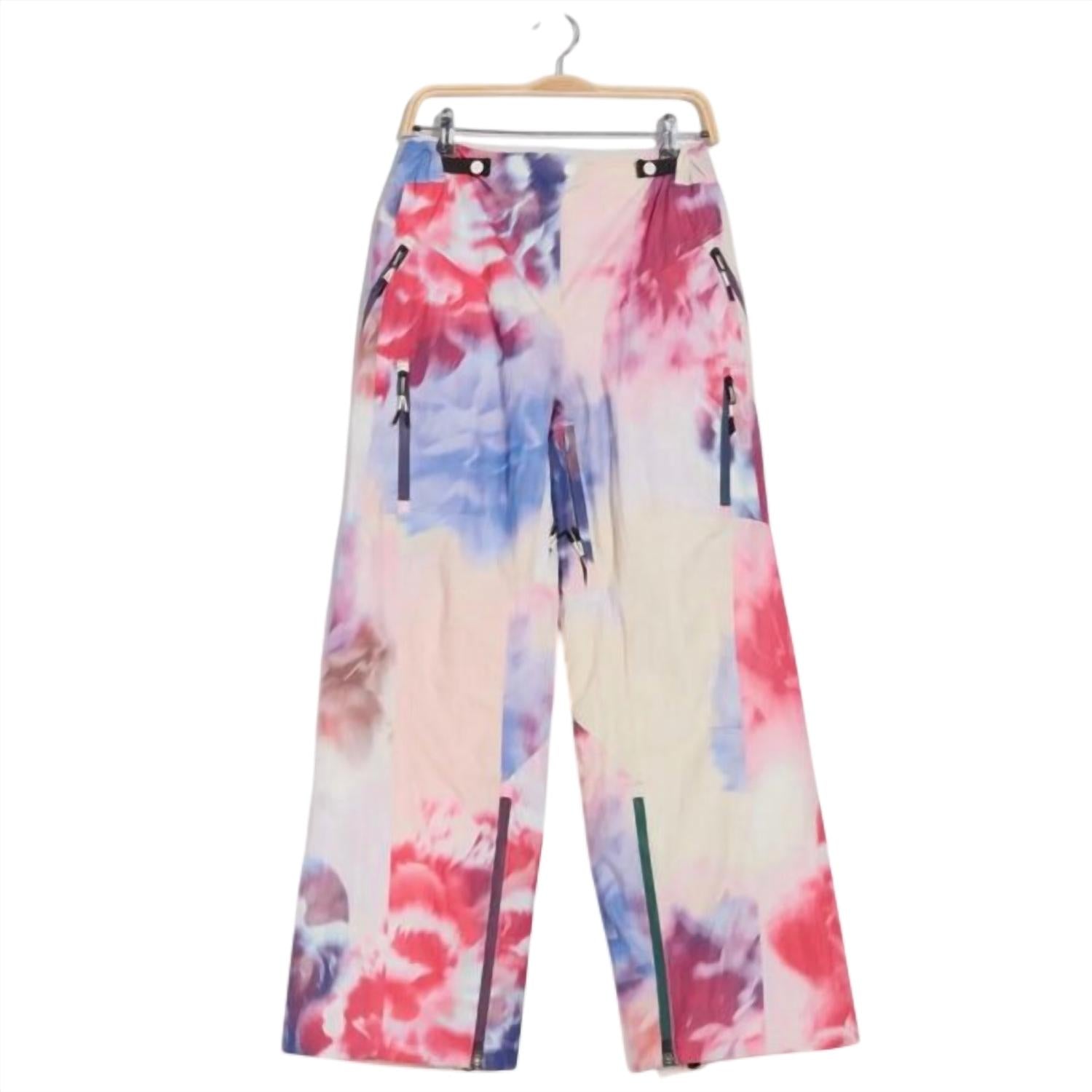 A perfectly tailored straight leg that you'll want in every color! Experience winter adventures in style with the On the Ascend Ski Pants by Free People, designed for women who embrace the outdoors. These straight-leg waterproof pants feature a relaxed fit with a tie-dye pink combo pattern. Crafted with 100% recycled polyester and PrimaLoft® insulation, they retain warmth in all weather conditions. Closure: Zip fly with button closure, complemented by functional zip and leg pockets. Care: Machine wash, line dry. Inseam: 31.5", and high waist rise at 11.25".