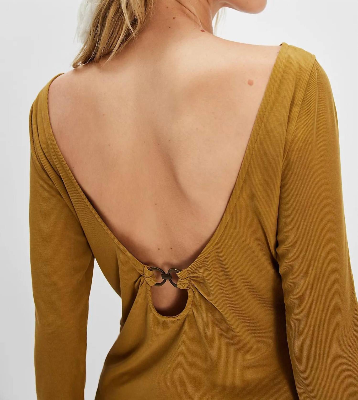 Look no further, you just found your perfect tee! Introducing the Riley Long Sleeve Tee by Free People, a staple piece in a chic dried tobacco hue. This boatneck tee is crafted from a luxurious blend of 65% Modal and 35% Polyester, featuring flattering fitted long sleeves and a full-length design. Its elegant low-back detail is accentuated with subtle hardware accents, making it perfect for a dinner party outfit. Closure: Pull on. Care: Machine wash cold, tumble dry. Fits true to size with the model wearing a size small.